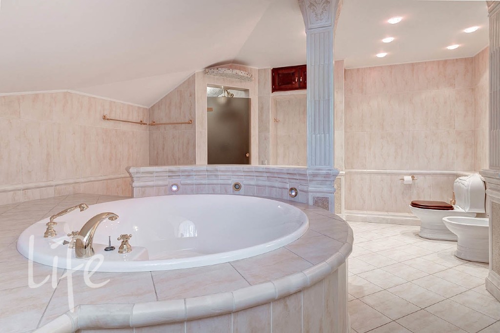 Цоколь: винный погреб, домашний кинотеатр, тренажерный зал, Spa-зона: бассейн с противотоком, сауна, комната отдыха, с/у, бойлерная.