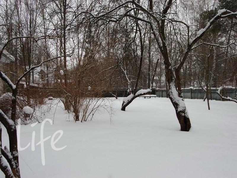 На участке плодовые деревья. По периметру охранная сигнализация.