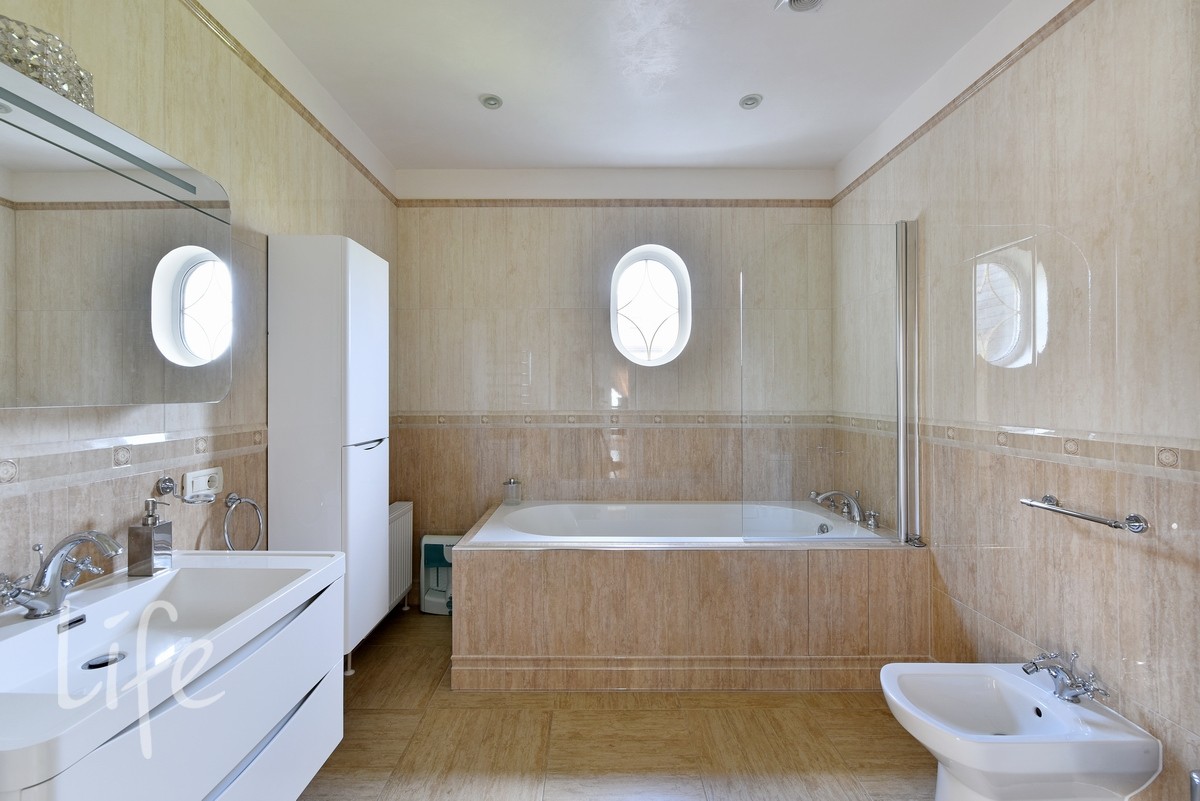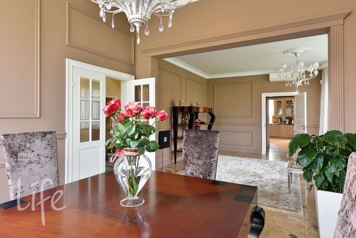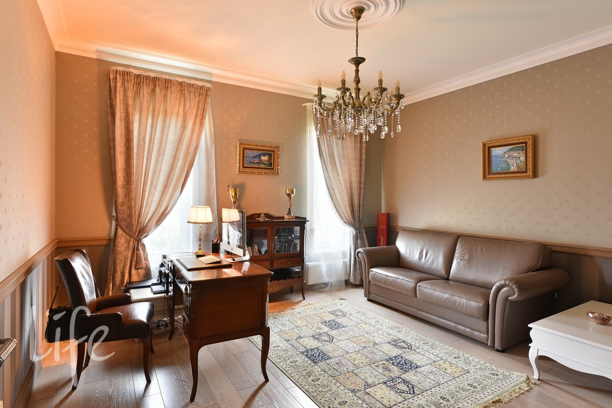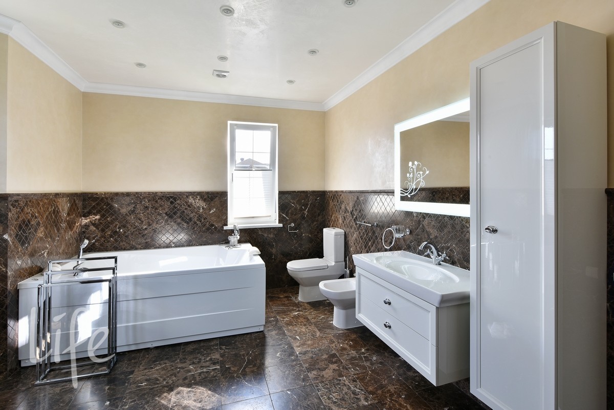 Стильный новый дом с качественной отделкой, с использованием натурального камня, текстиля и ценных пород дерева. Интерьер выполнен в современном классическом стиле, со вкусом подобрана мебель и аксессуары. Выполнена система вентиляции и кондиционирования.