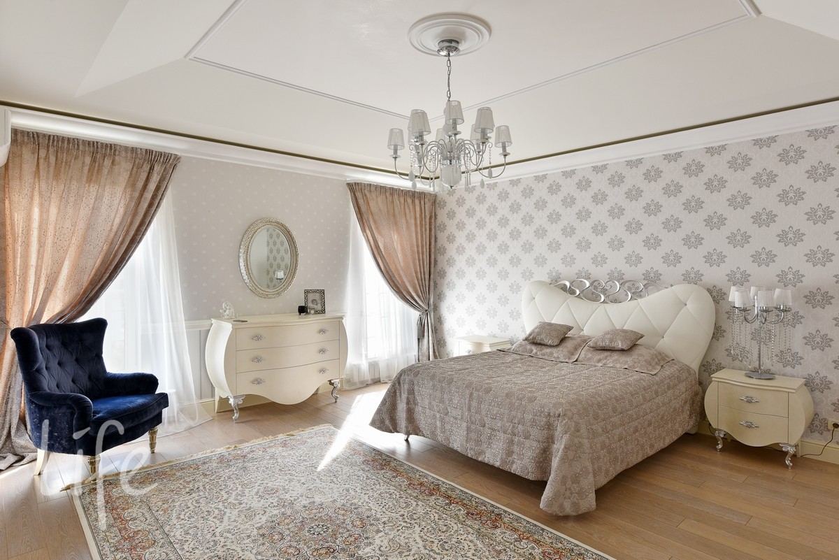 2 этаж: холл-библиотека, основная спальня с гардеробной и туалетной комнатой; детская спальня с игровой комнатой, 2-я детская спальня, гостевая спальня (кабинет), туалетная комната.