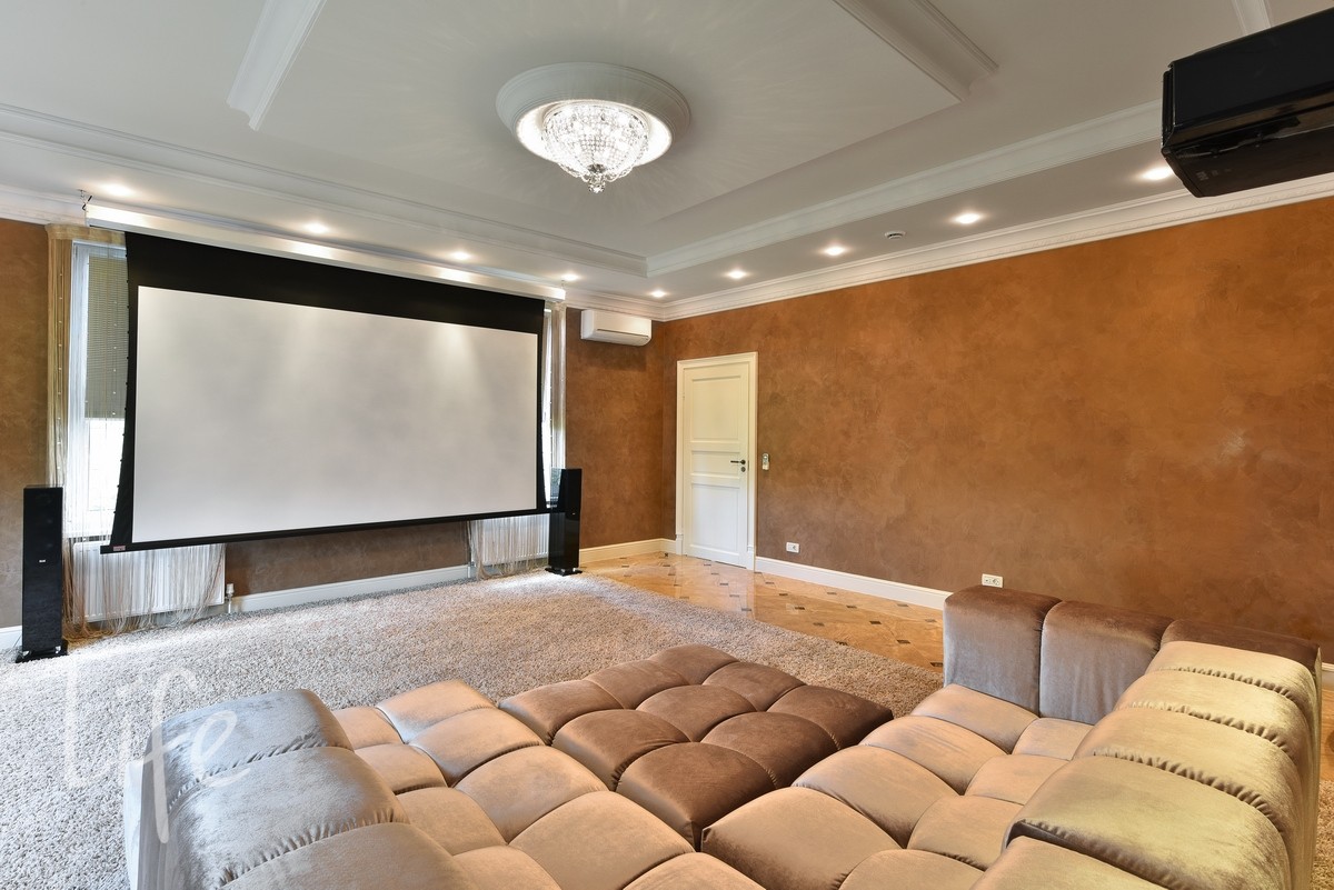 1 этаж: прихожая, холл, кабинет (спальня), с/у с душем, кухня-столовая, гостиная, каминный зал с выходом на патио, кинозал, постирочная, котельная.