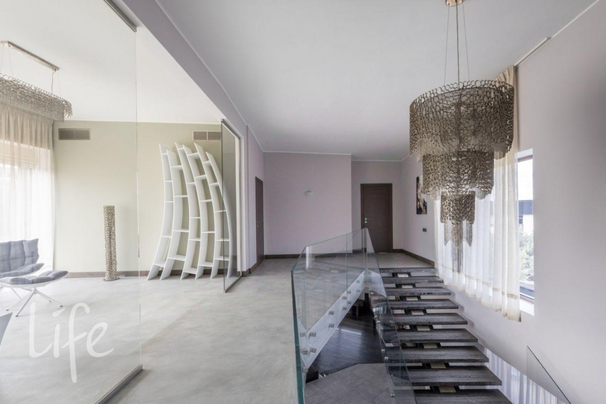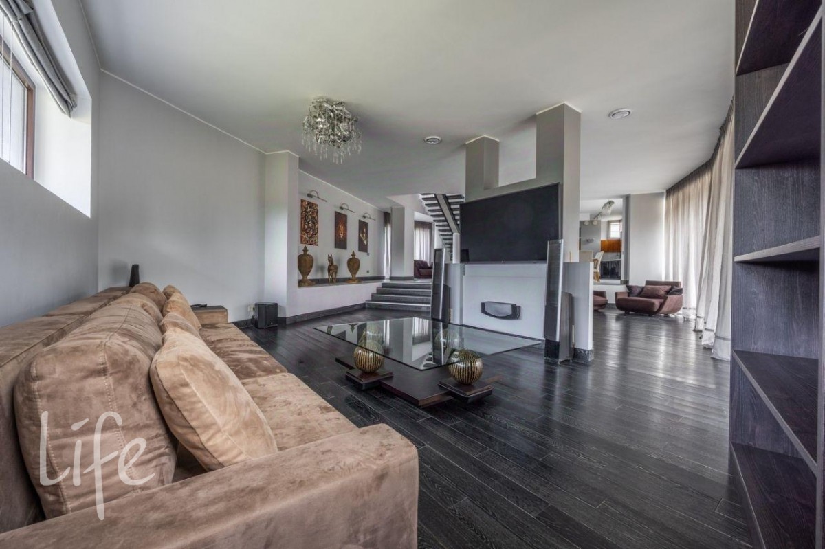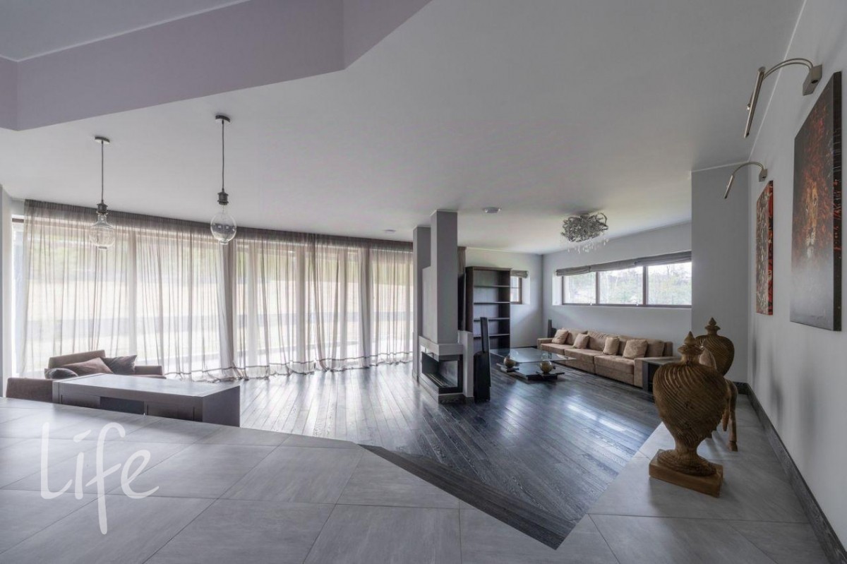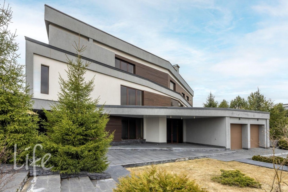 Стильный современный особняк в охраняемом поселке «Кристалл Истра», окруженном лесной зоной и рекой. Панорамные окна, дорогие материалы в отделке интерьера (камень, дерево, ковка).