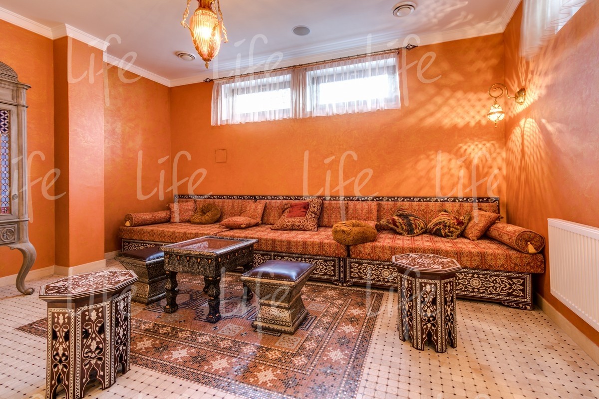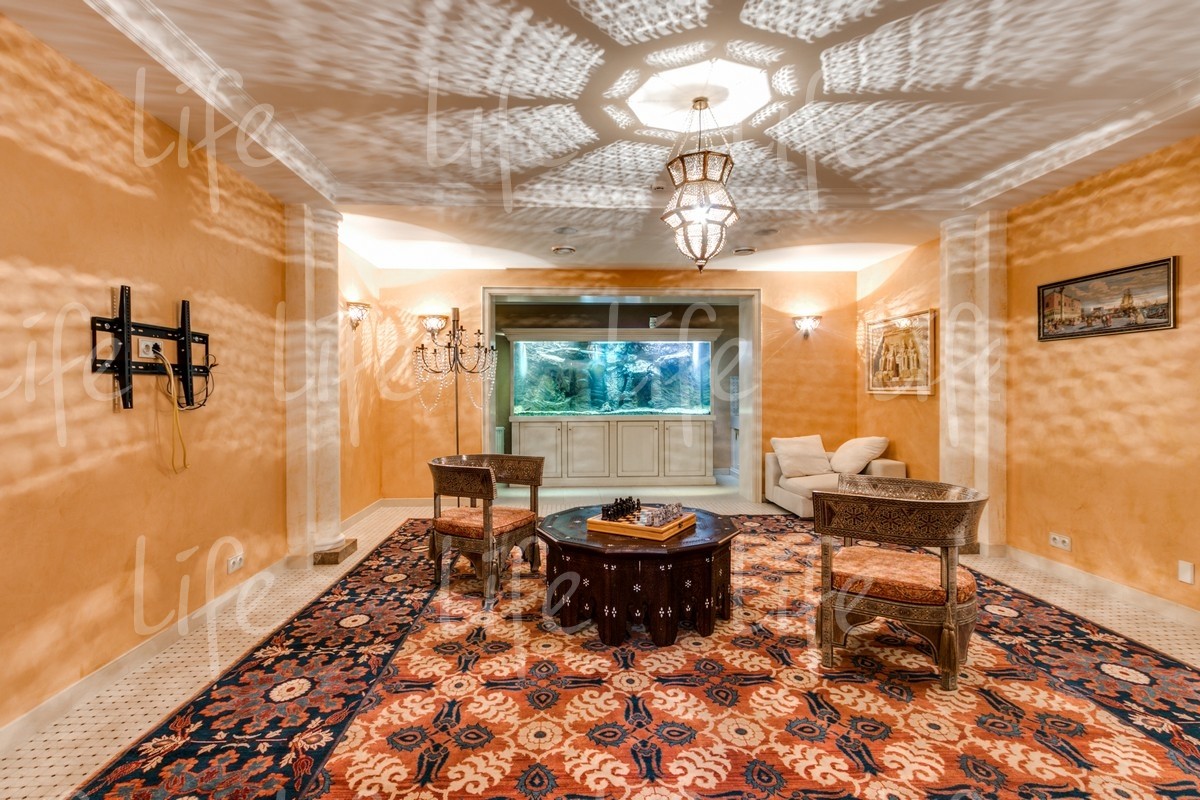 Цоколь: зона СПА: комната отдыха, хамам, сауна, душевая, с/у; винный погреб, протирочная, бойлерная, гардеробная, с/у.