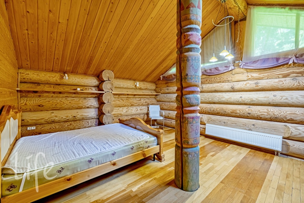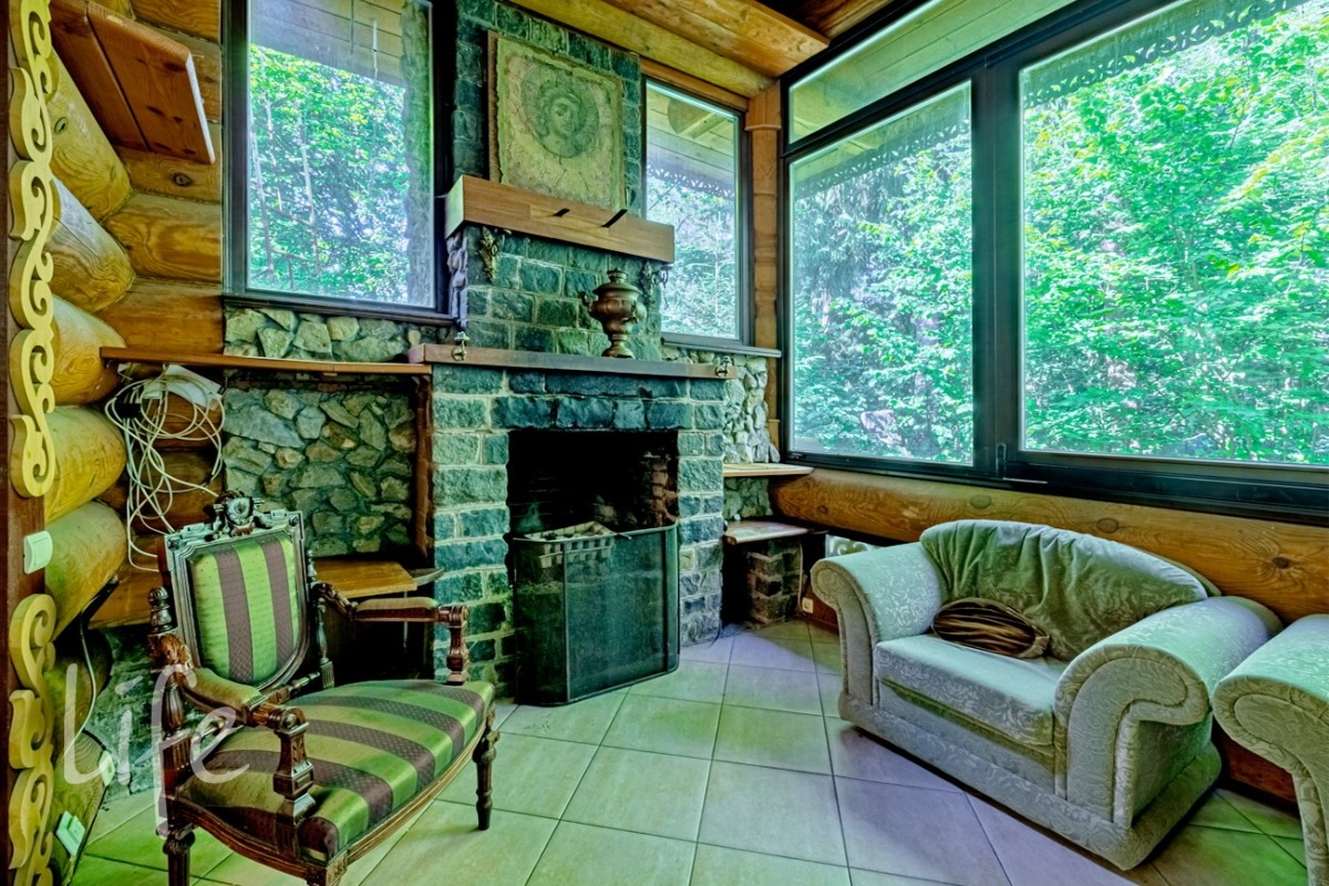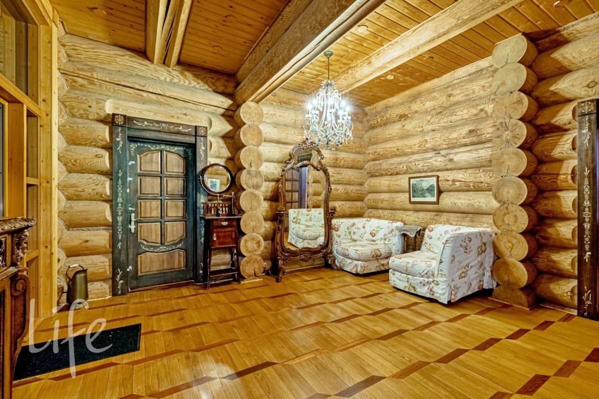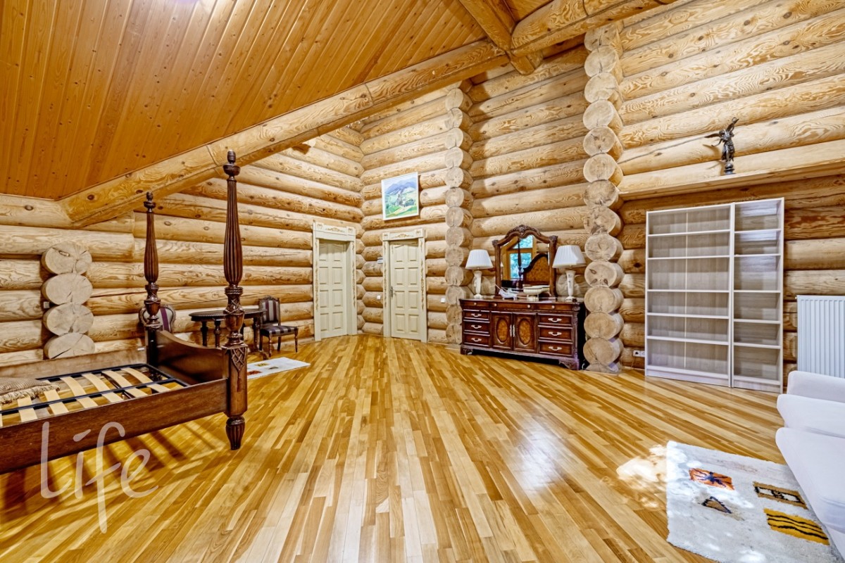 Ни с чем не сравнимая атмосфера экологичного деревянного дома, наполненность светом и воздухом за счет высоких потолков, огромных окон, просторных площадей. Ручная роспись, раритетная отреставрированная мебель, элементы и предметы декора, картины придают логическую завершенность интерьеру.