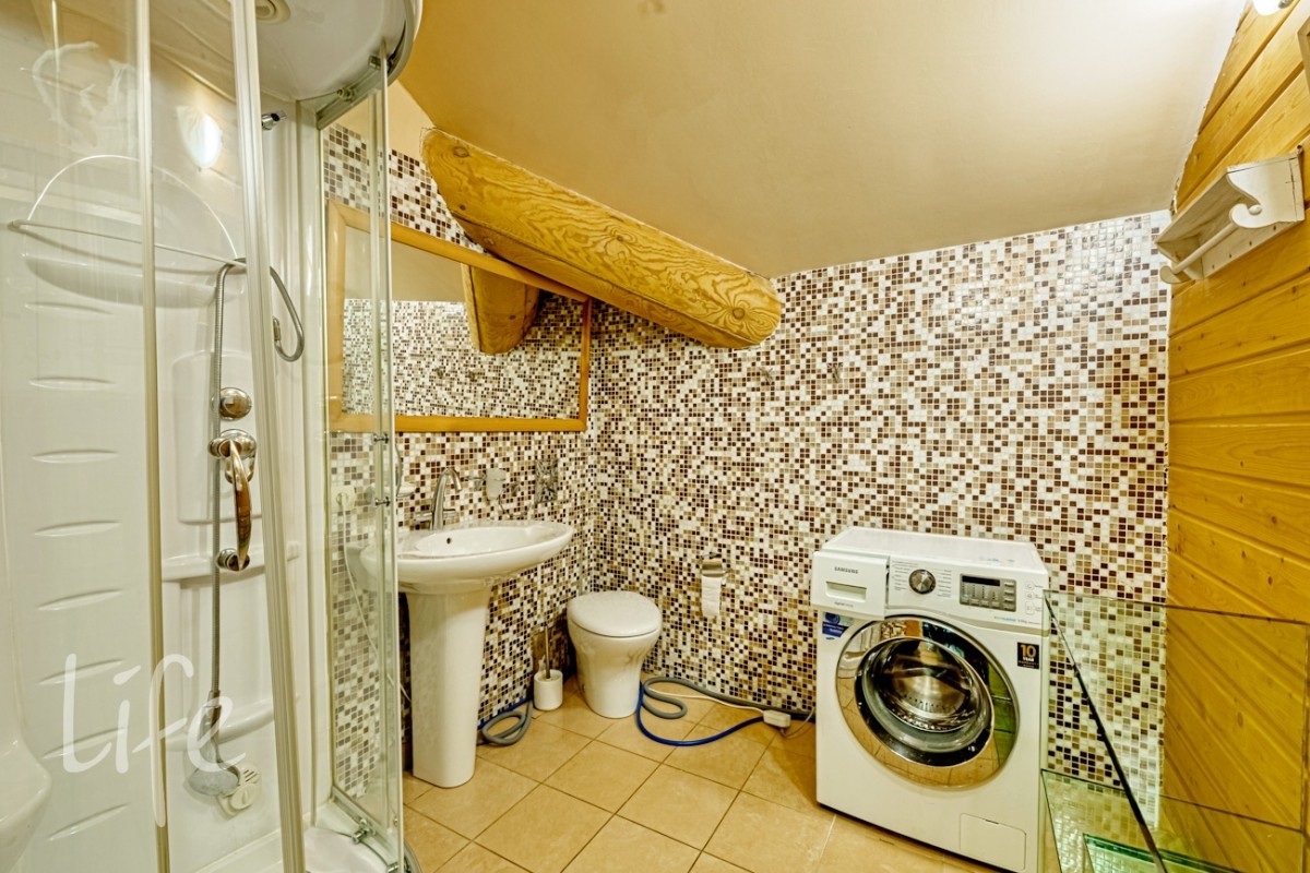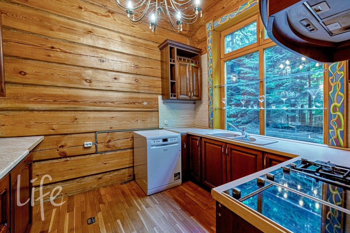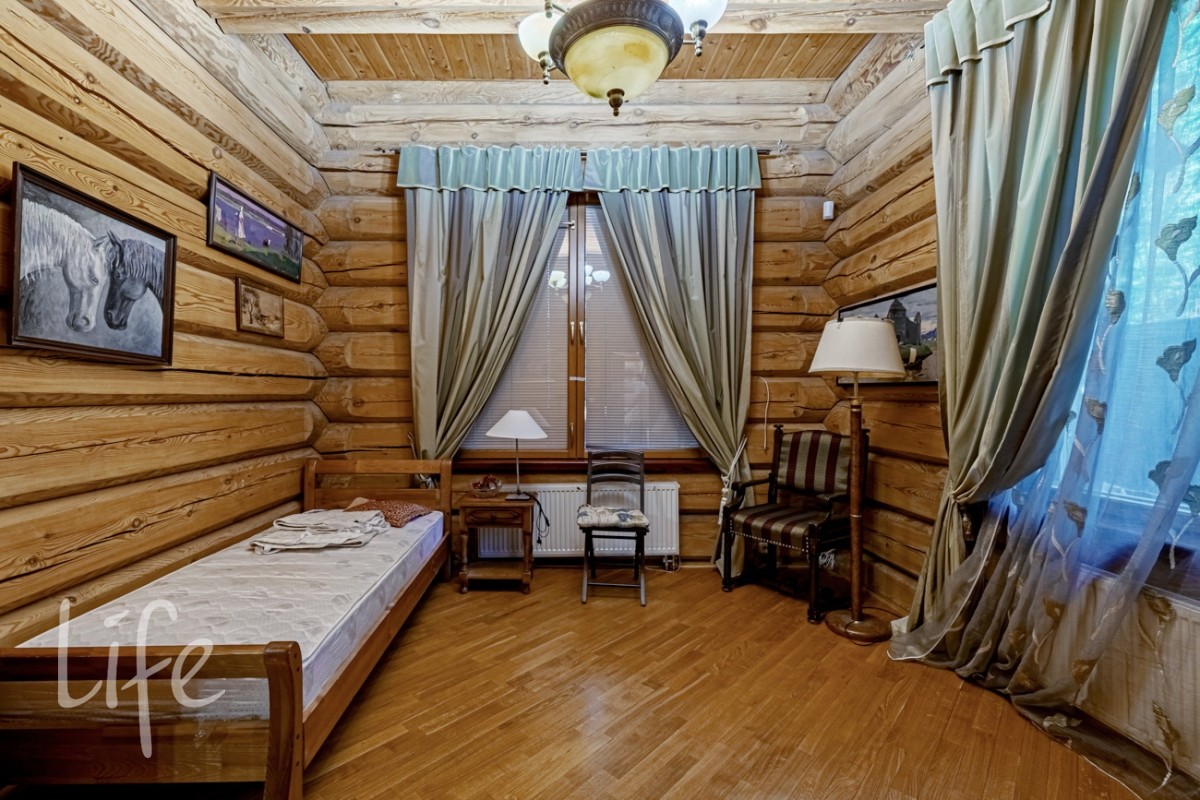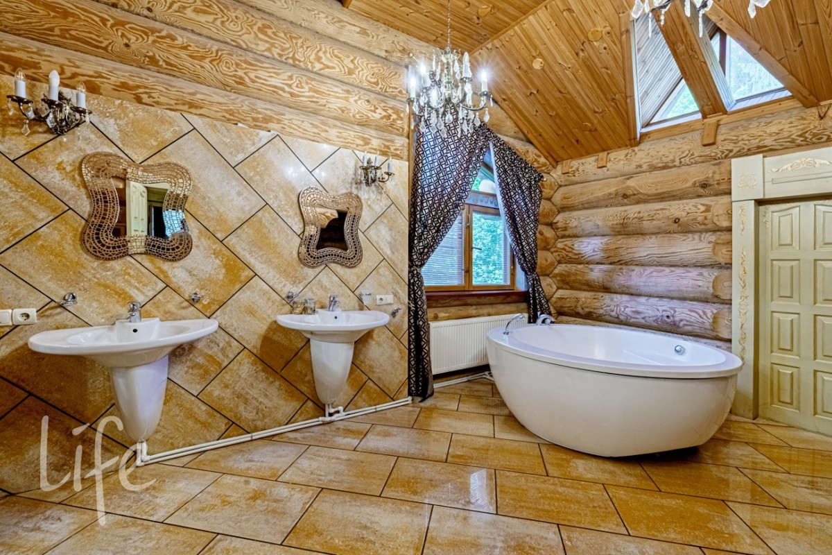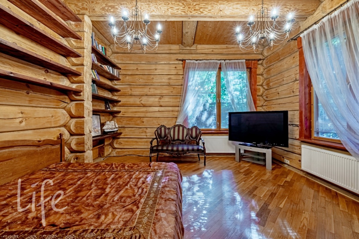 Ни с чем не сравнимая атмосфера экологичного деревянного дома, наполненность светом и воздухом за счет высоких потолков, огромных окон, просторных площадей. Ручная роспись, раритетная отреставрированная мебель, элементы и предметы декора, картины придают логическую завершенность интерьеру.