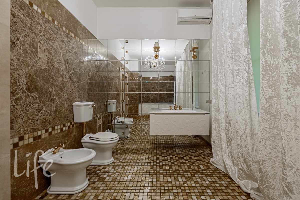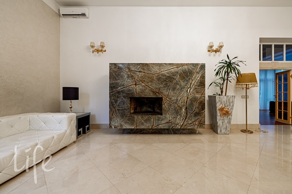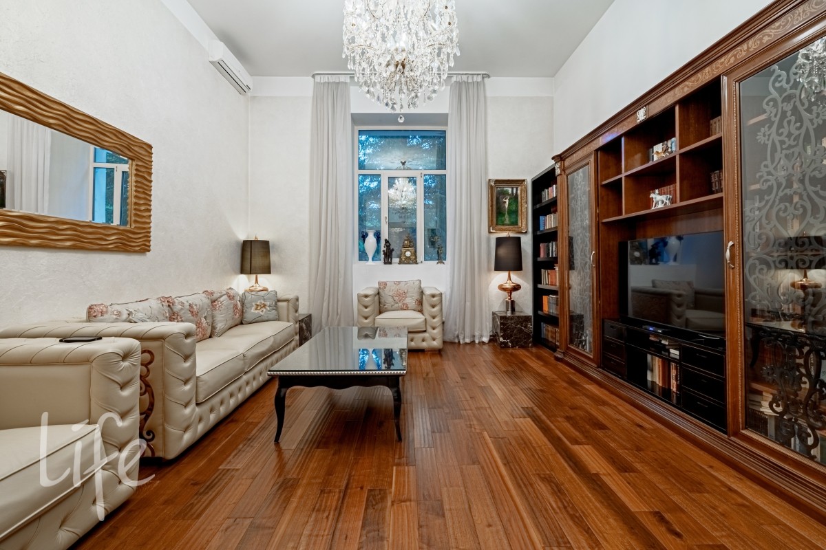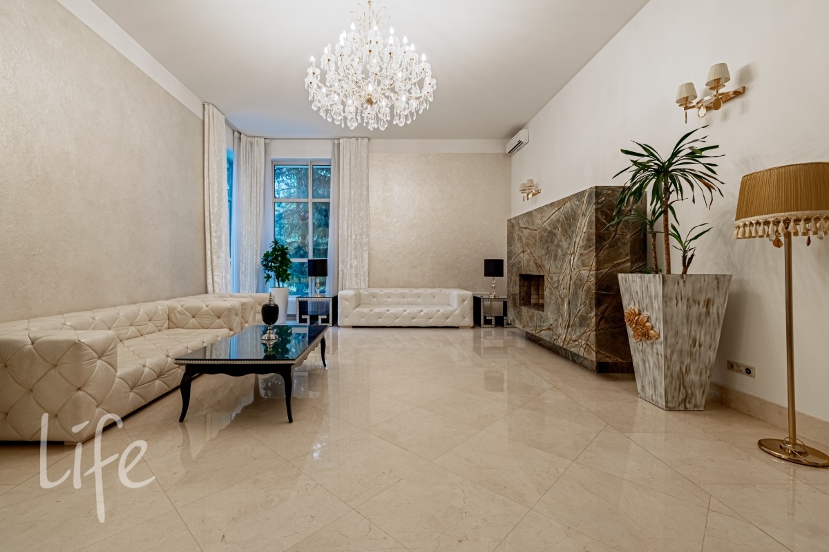 Интерьер в классическом стиле, в мягких пастельных тонах. Со вкусом подобранная мебель и аксессуары, привезенные из Италии под заказ. Гостиную украшает дровяной камин.