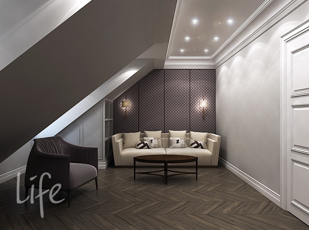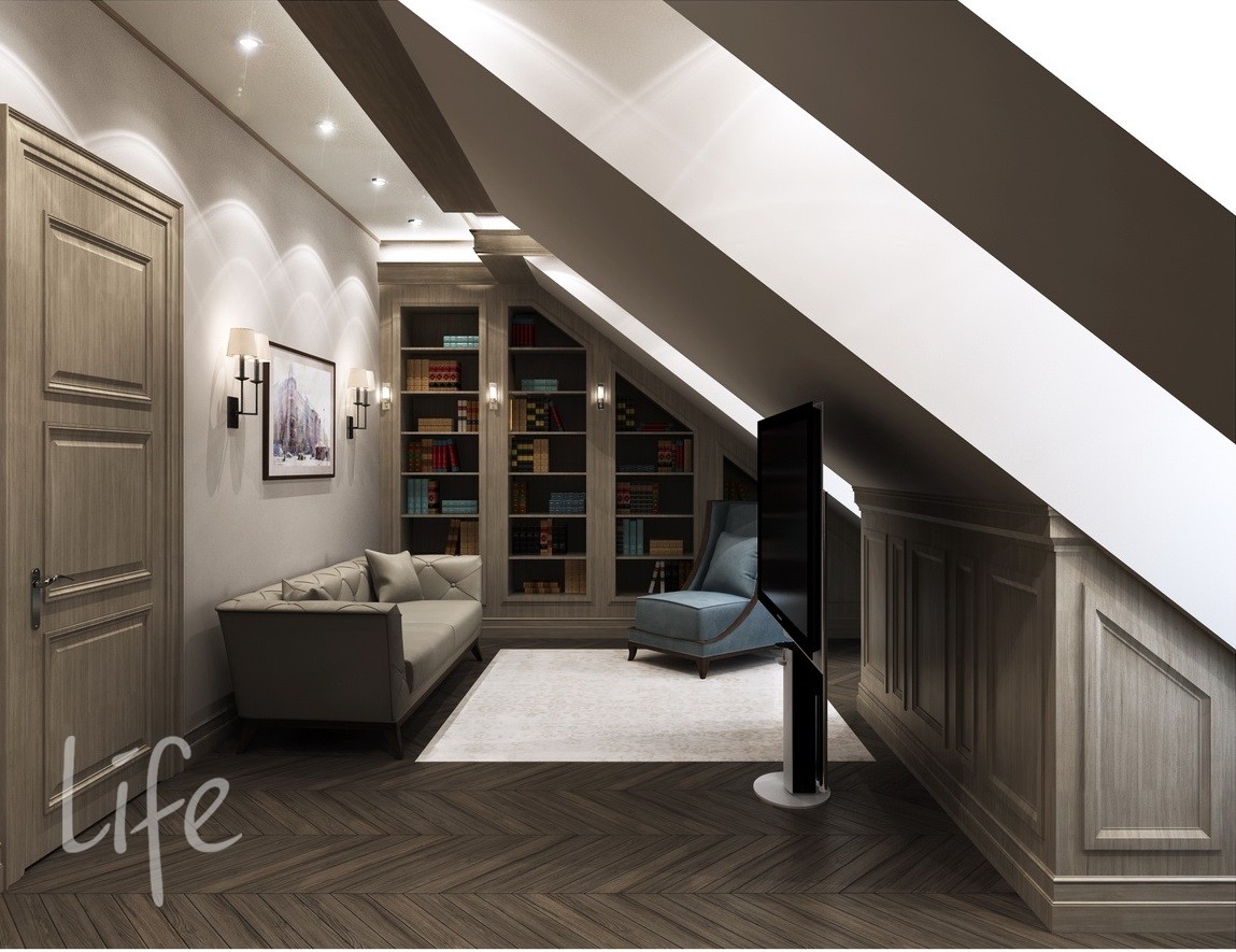 Мансарда: холл, кабинет, спальня, с/у.