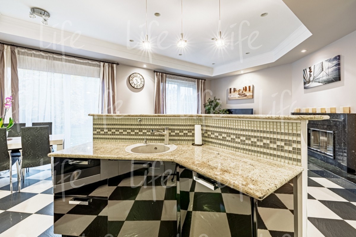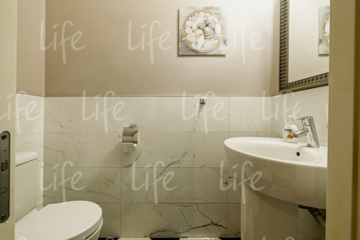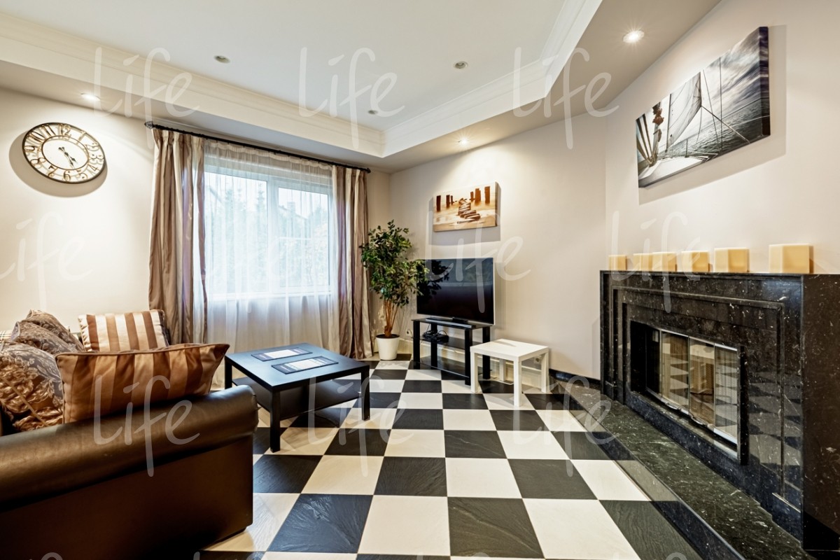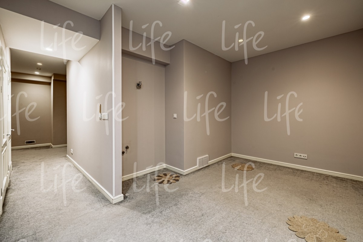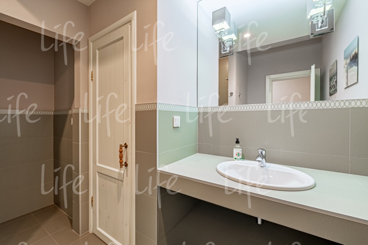 1 этаж: кухня-столовая и гостиная (с камином) с выходом на патио и участок, с/у, постирочная.
