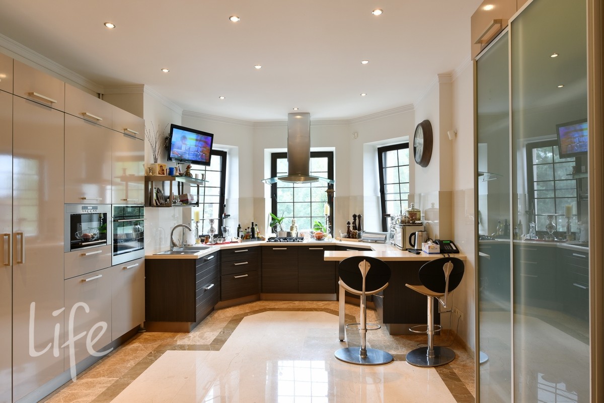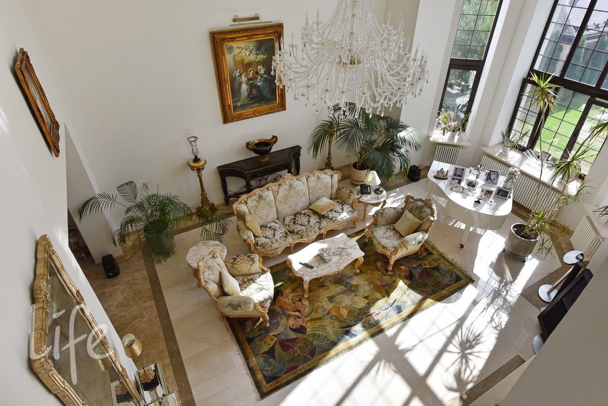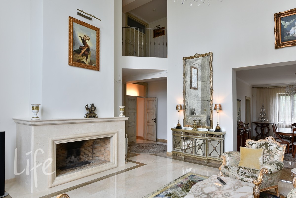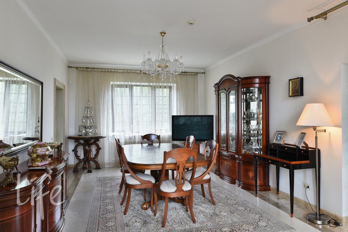 1 этаж: прихожая, гардеробная, с/узел, кабинет с камином, гостиная с камином двухсветная, столовая, кухня, зимний сад с выходом на участок, в доме установлен лифт.