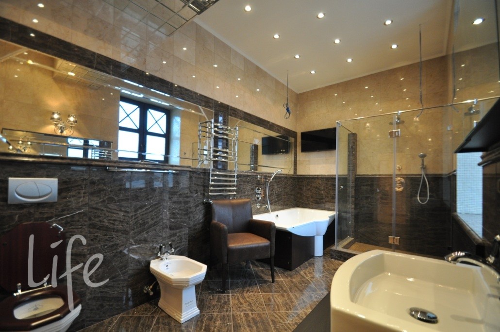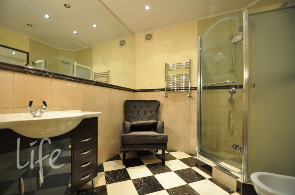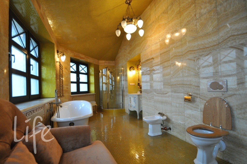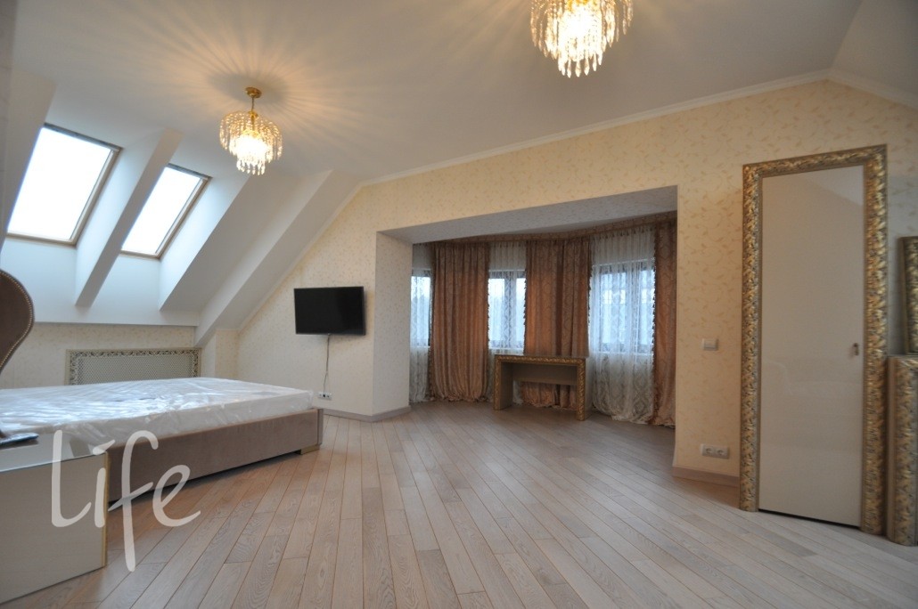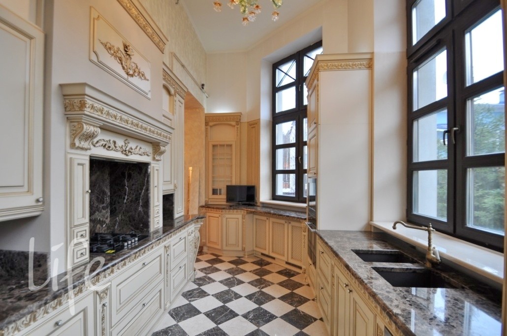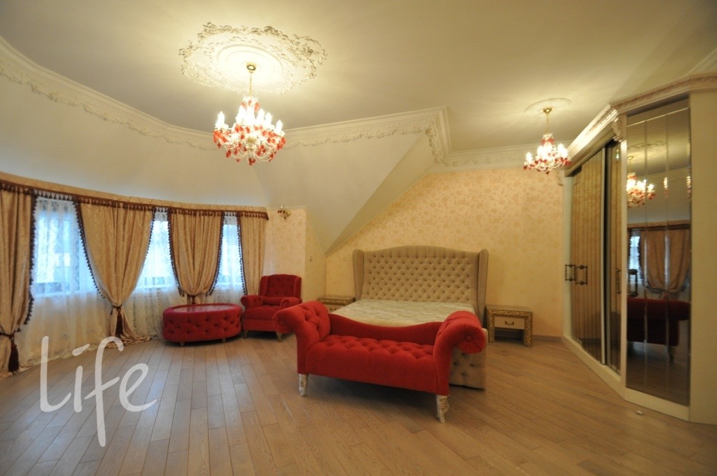 Коттеджный поселок. Дом жилой, полностью под ключ, меблирован и оборудован всей необходимой бытовой техникой. Интерьер в классическом стиле. В отделке дома использовалась дизайнерская лепнина, ручная роспись, сусальное золото, паркет разных пород дерева, венецианская штукатурка, дорогие текстильные обои, техника Miele, люстры Murano и Baccarat, мебель от Jumbo и сантехника Devon&Devon.