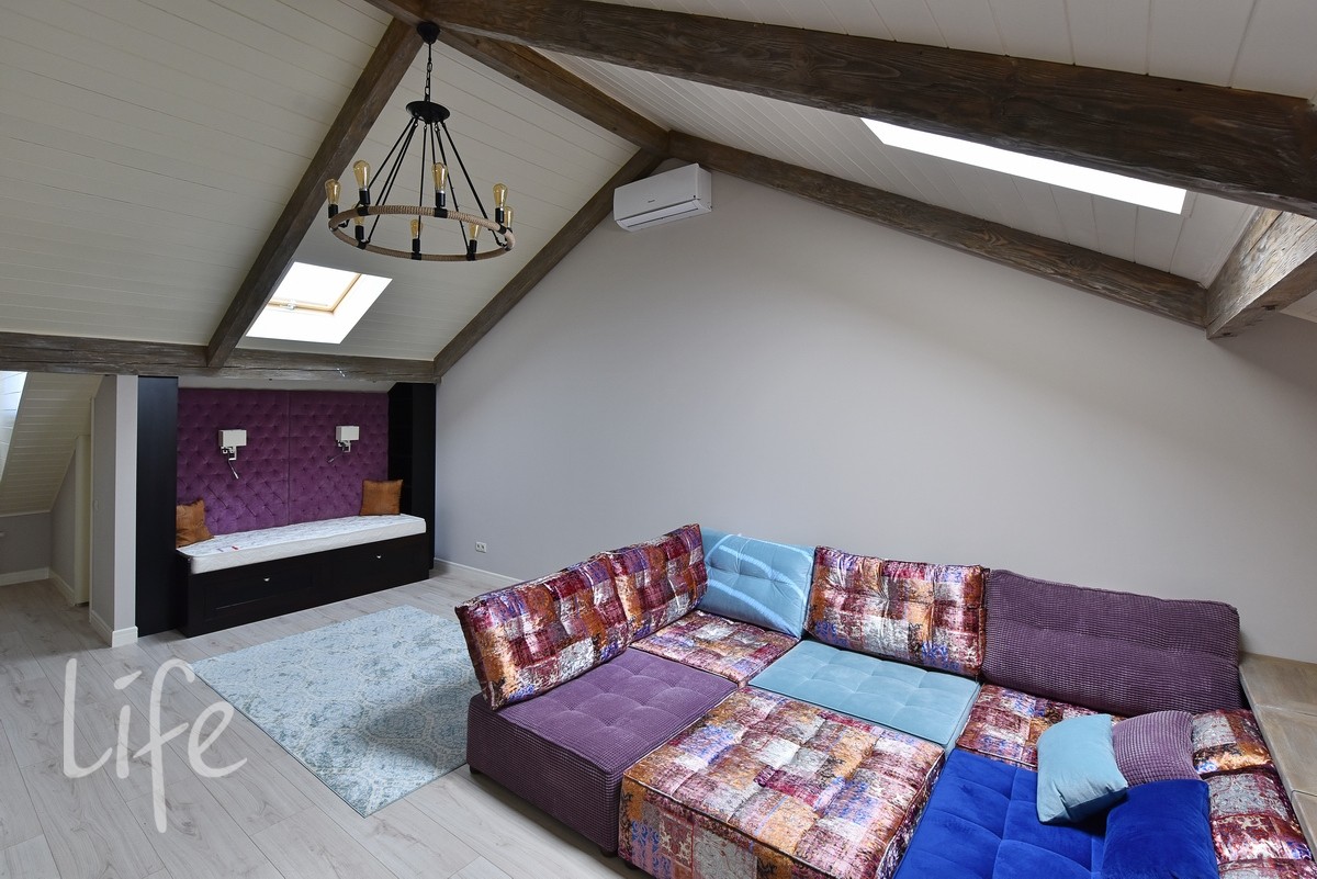 Мансарда: спальня, санузел, постирочная, комната отдыха.