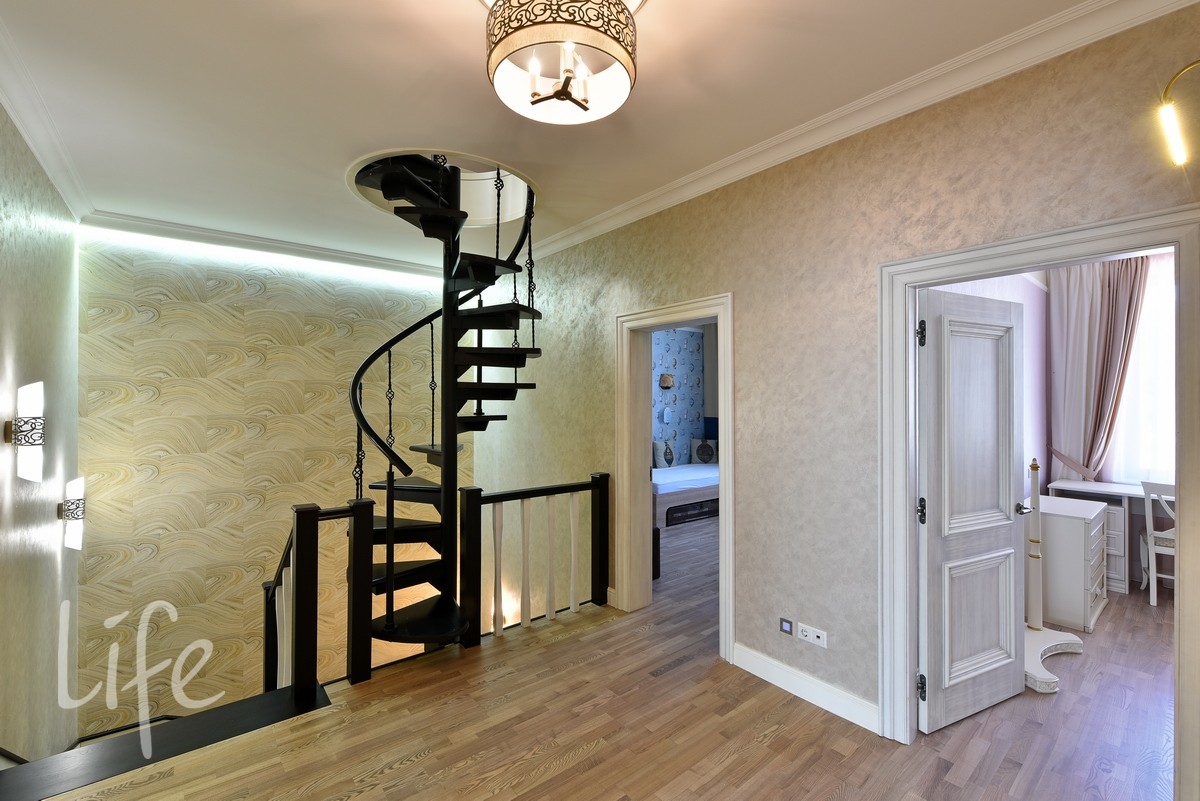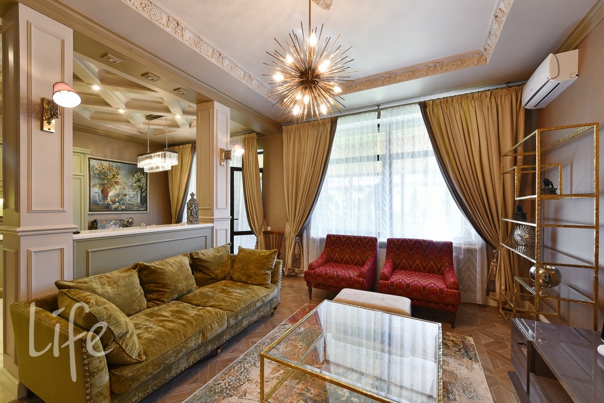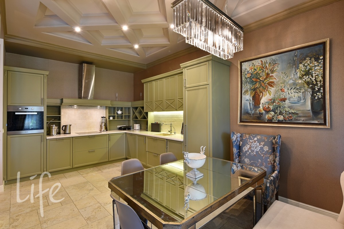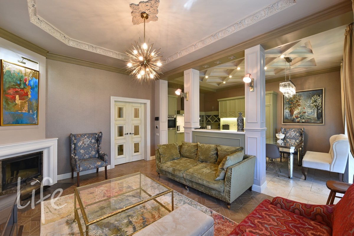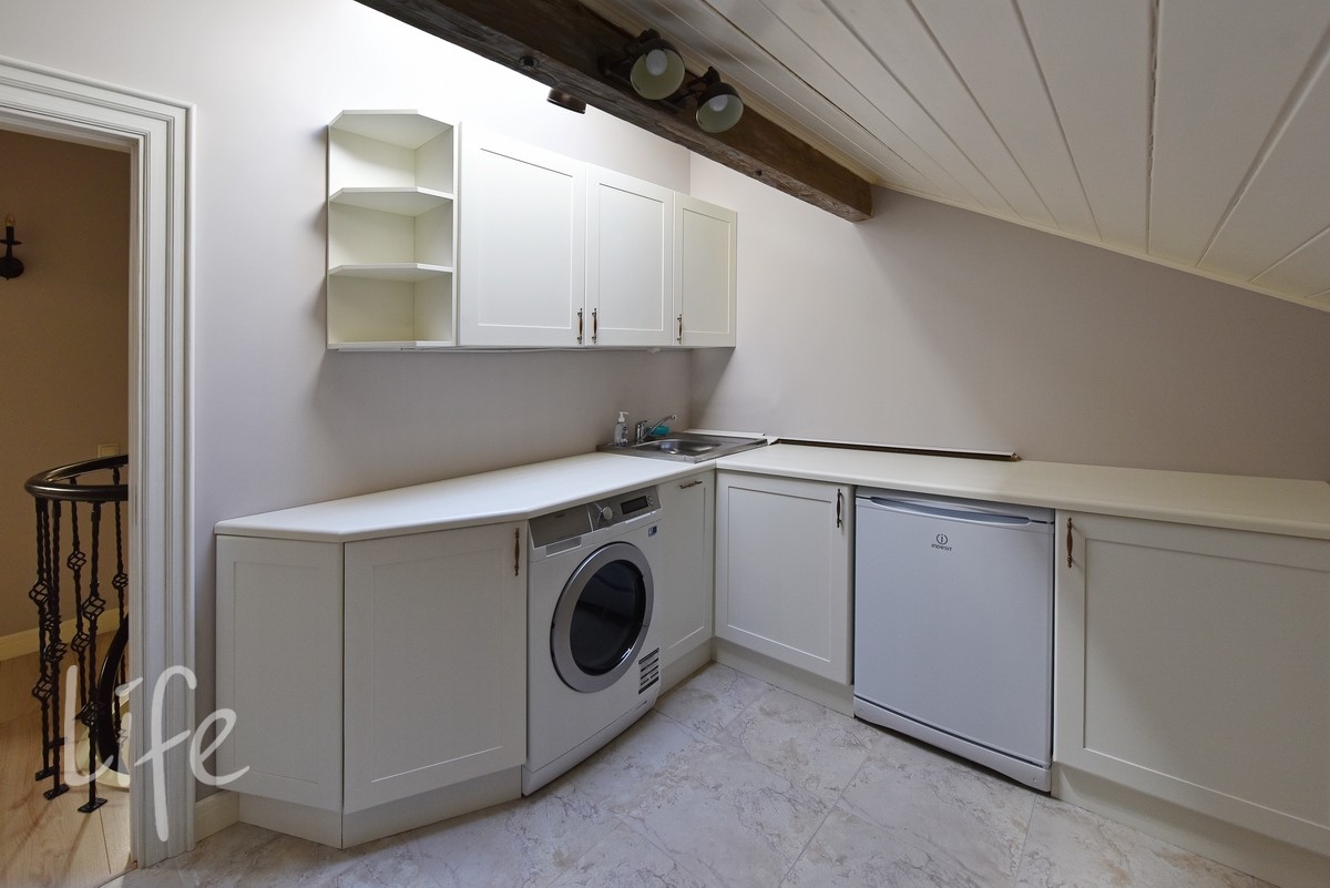 Дизайнерский интерьер в мягких, приглушенных тонах, со вкусом подобрана мебель и аксессуары. Гостиную украшает действующий дровяной камин. Бытовая техника от компании Miele.