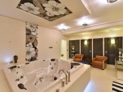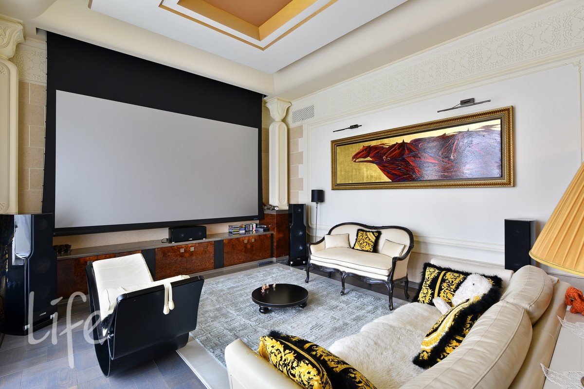 Фасад дома выполнен в классическом стиле с элементами ампира. Отделочные работы были проведены на высоком уровне с использованием самых качественных материалов. Интерьер же отличается роскошью и утончённостью: он оформлен в пастельных тонах, а потолки и стены украшает изысканная лепнина. Кроме того, в доме вы найдёте великолепную итальянскую мебель и аксессуары, которые придают ему ещё больше очарования. Планировка дома располагает комфортному проживанию большой семьи. Все коммуникации центральные. Этот посёлок находится под надёжной охраной и имеет собственную службу эксплуатации.