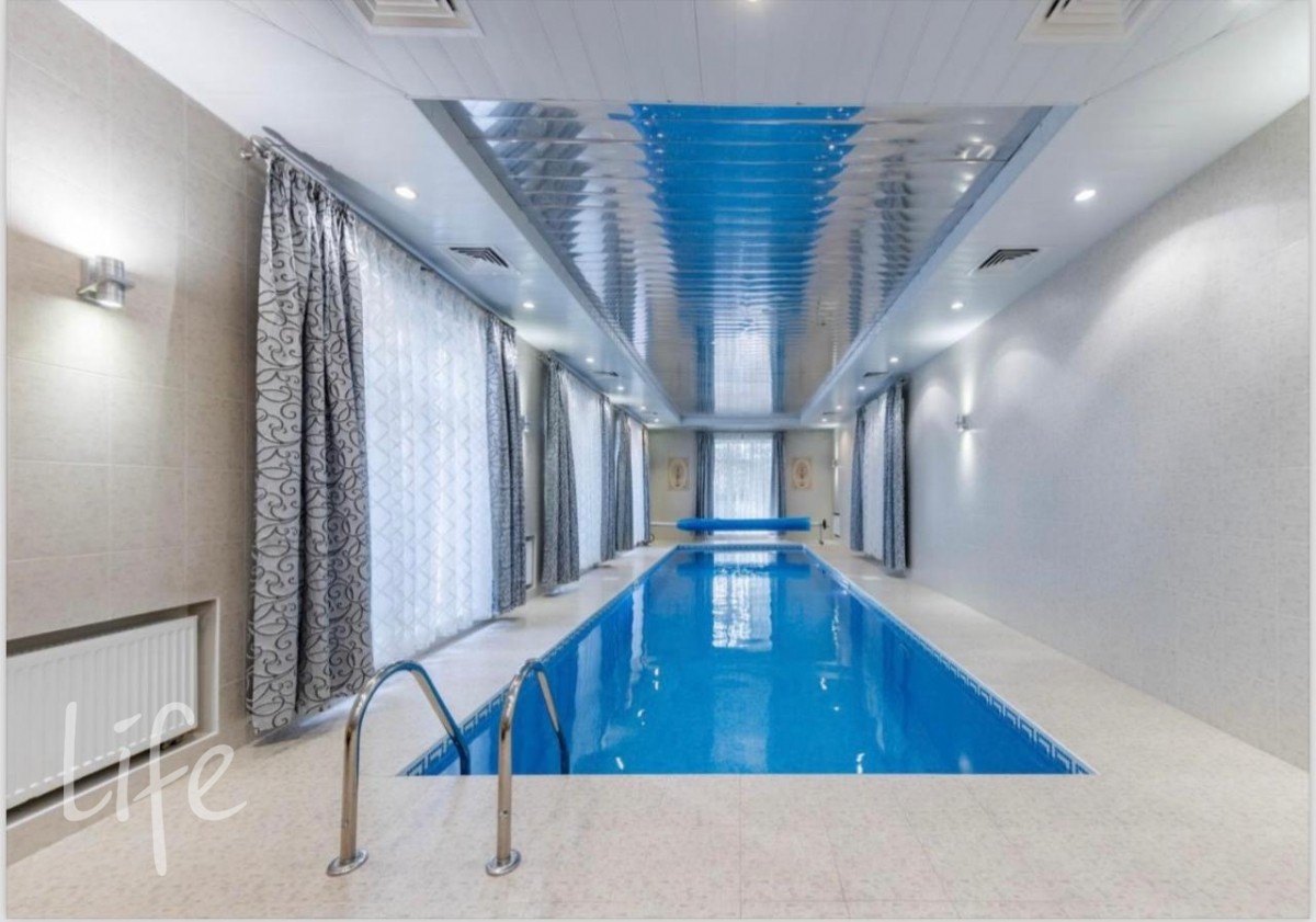 1 этаж: кухня, столовая, гостиная с камином, зимний сад, бассейн с сауной, с/у, кабинет.