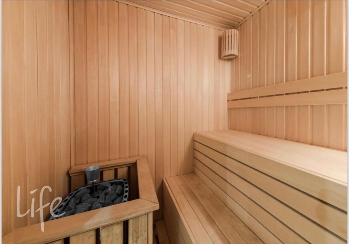 Планировка дома создает атмосферу комфорта: четыре спальни, гостиная и зона СПА с бассейном и сауной. В гостиной установлен дровяной камин, а для персонала предусмотрена отдельная квартира. Все центральные коммуникации уже подведены.