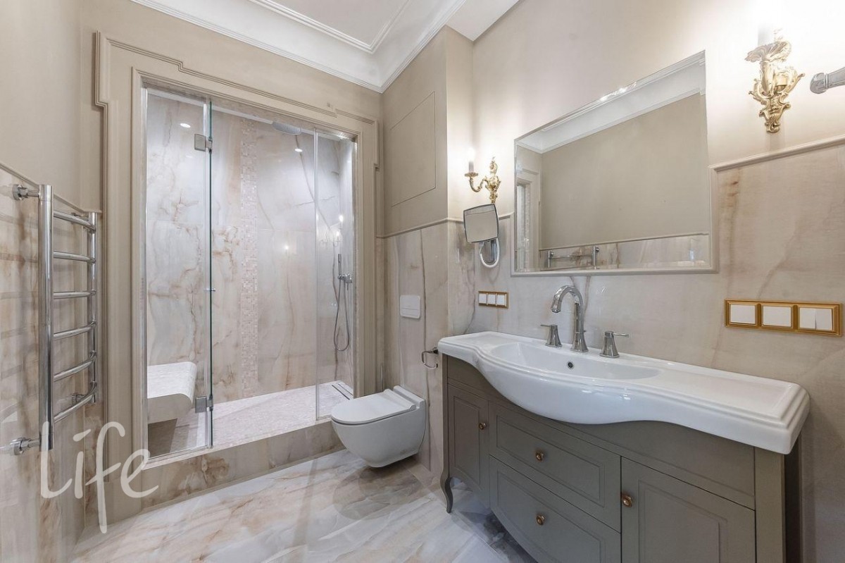 Все центральные коммуникации. Установлены системы теплых водяных полов, вентиляции и кондиционирования, пожарная и охранная сигнализация, видеонаблюдения, водоподготовки воды. Встроенный пылесос.