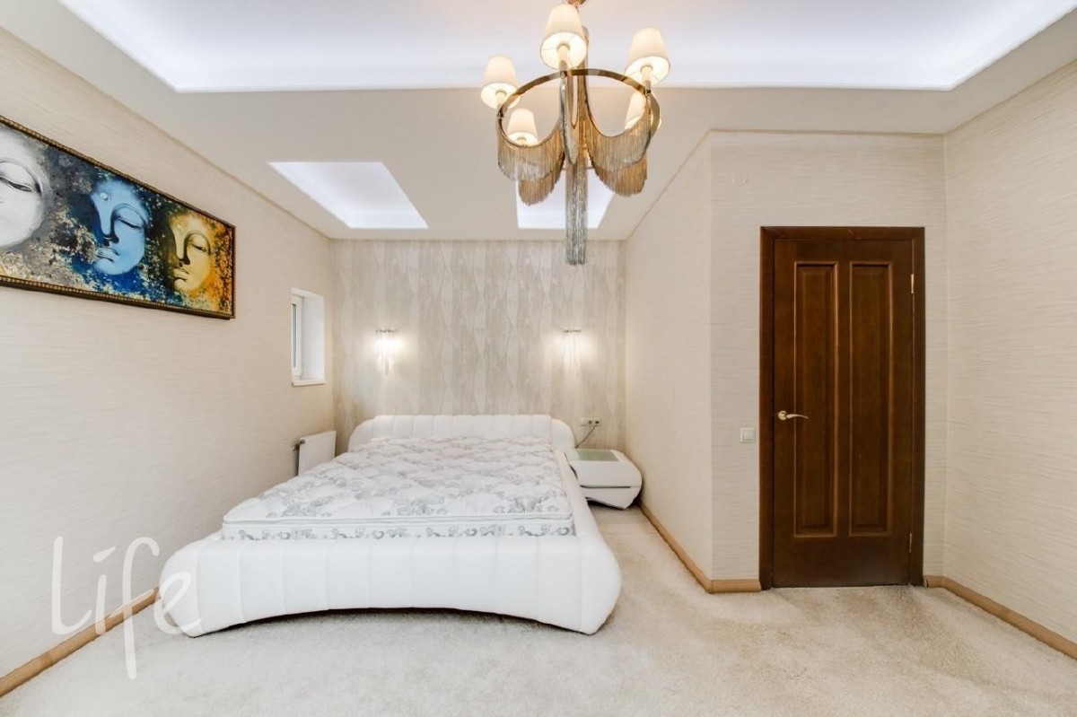 2 этаж: большая спальня, малая спальня, спальня с панорамными окнами (используется как кабинет), большой санузел с джакузи.