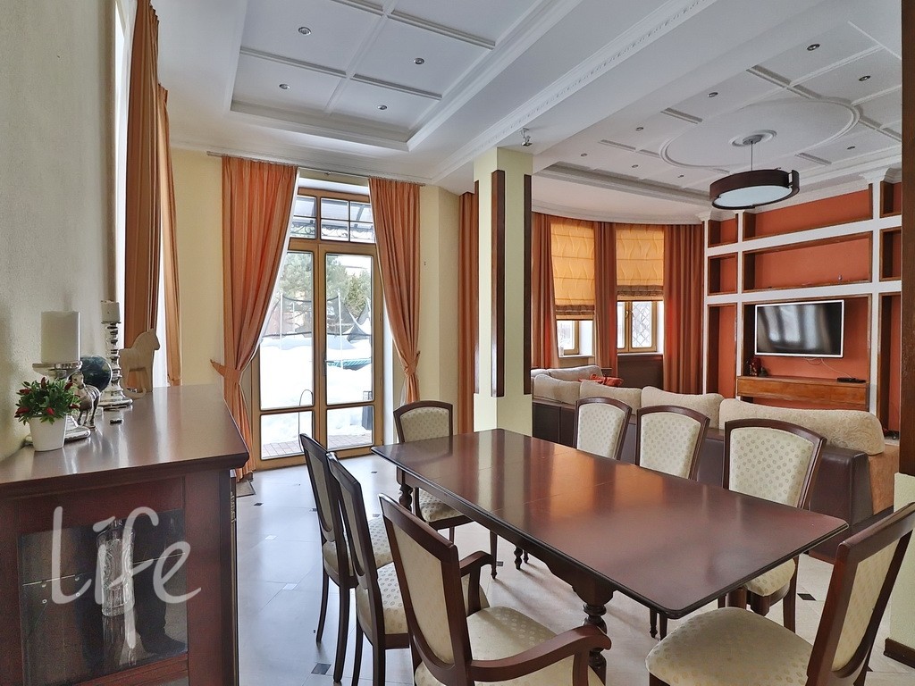 В уединённом месте, вдали от городской суеты, расположился элитный коттеджный посёлок «Новахово». Дом полностью готов к проживанию, в нём есть всё необходимое. Интерьер выполнен в классическом стиле, мебель подобрана со вкусом. В гостиной установлен двусторонний камин, который создаёт уютную атмосферу.