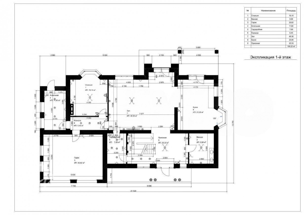 1 этаж: прихожая, гардеробная, просторная гостиная с выходом на участок, кухня-столовая, спальня, с/у, гараж на два автомобиля.