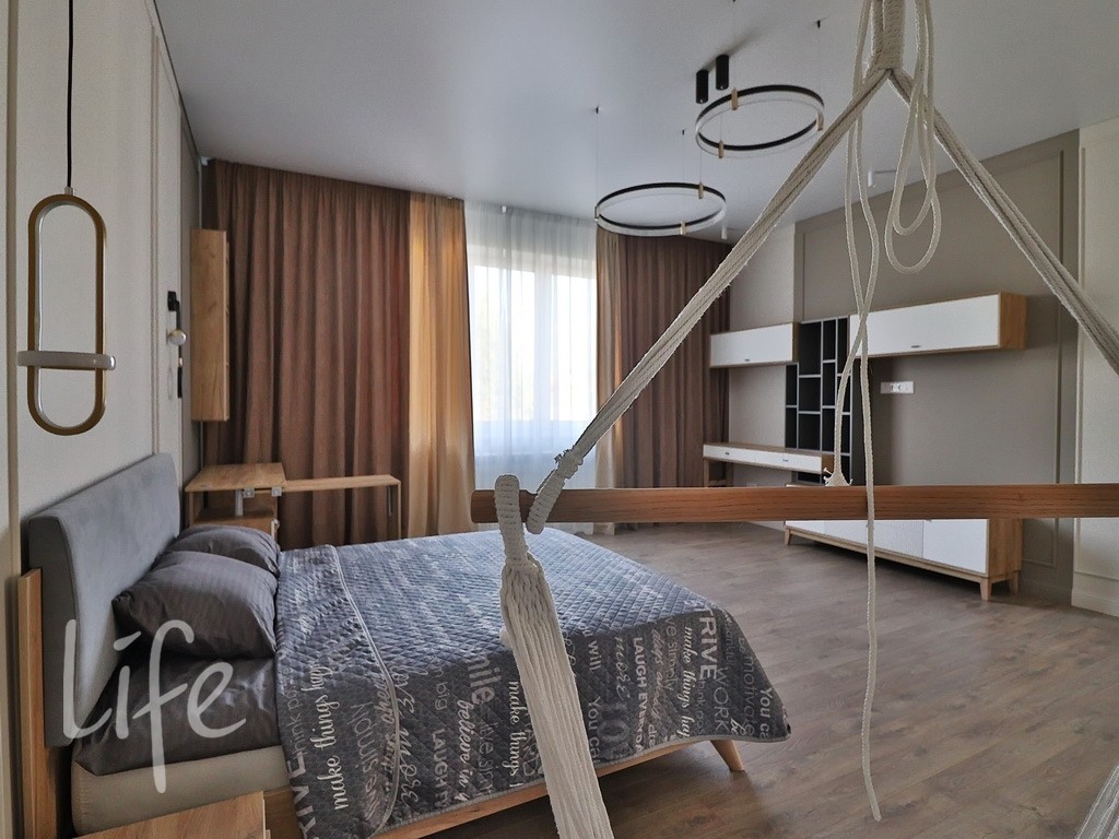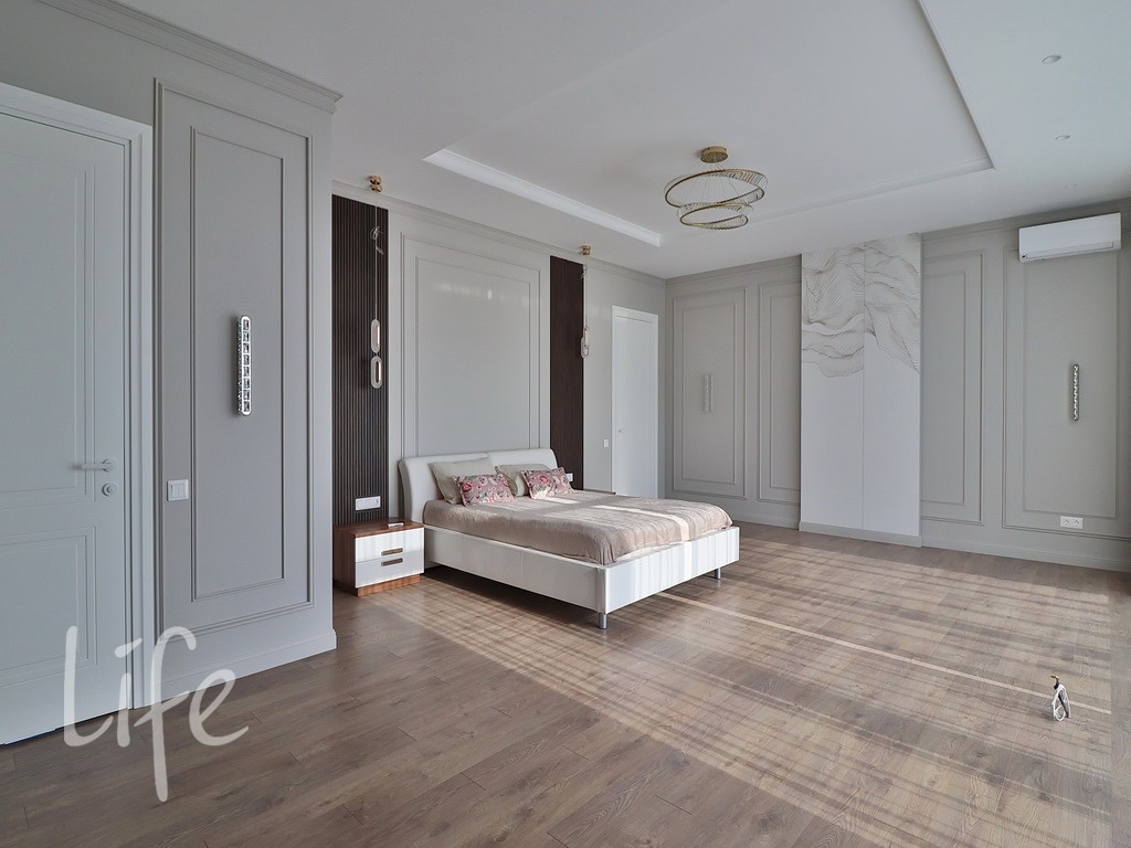 Современный интерьер в светлых, мягких тонах, со вкусом подобранная мебель и аксессуары, интересные световые решения.