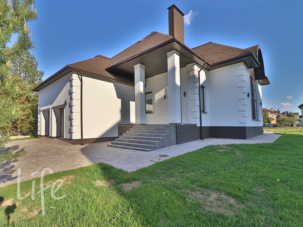 1 этаж: прихожая, гостиная, кухня-столовая с выходом на летнюю веранду, спальня, с/у, бойлерная, гараж на два автомобиля.