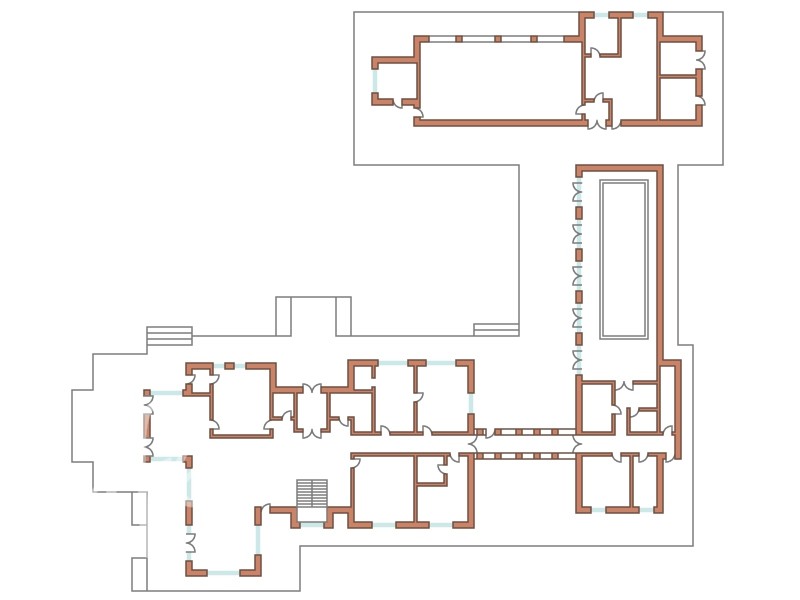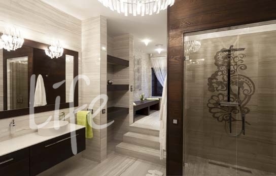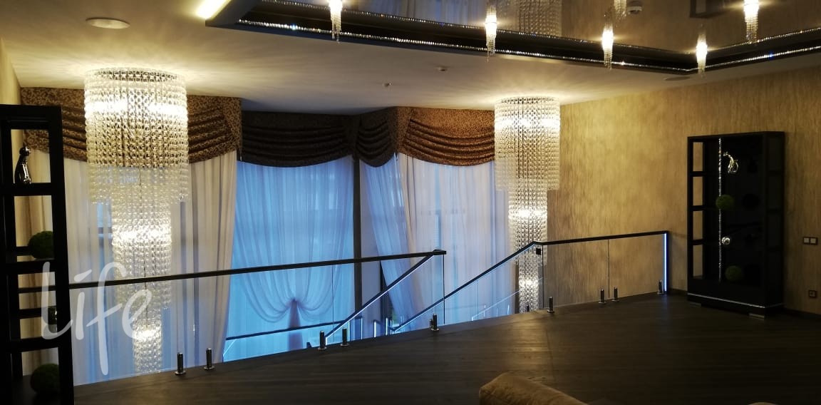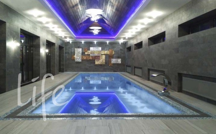 1 этаж: холл, гардеробная, кухня-столовая, гостиная с камином и выходом на террасу, кладовая, кабинет, бильярдная, винный погреб, домашний кинотеатр, гостевая спальня, санузел, хамам, сауна, фитнес зал, массажный зал, бассейн, 2 жилые комнаты, бойлерная, гараж на 3 автомобиля.
