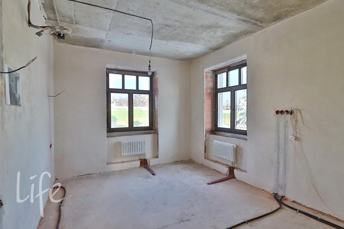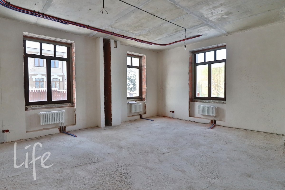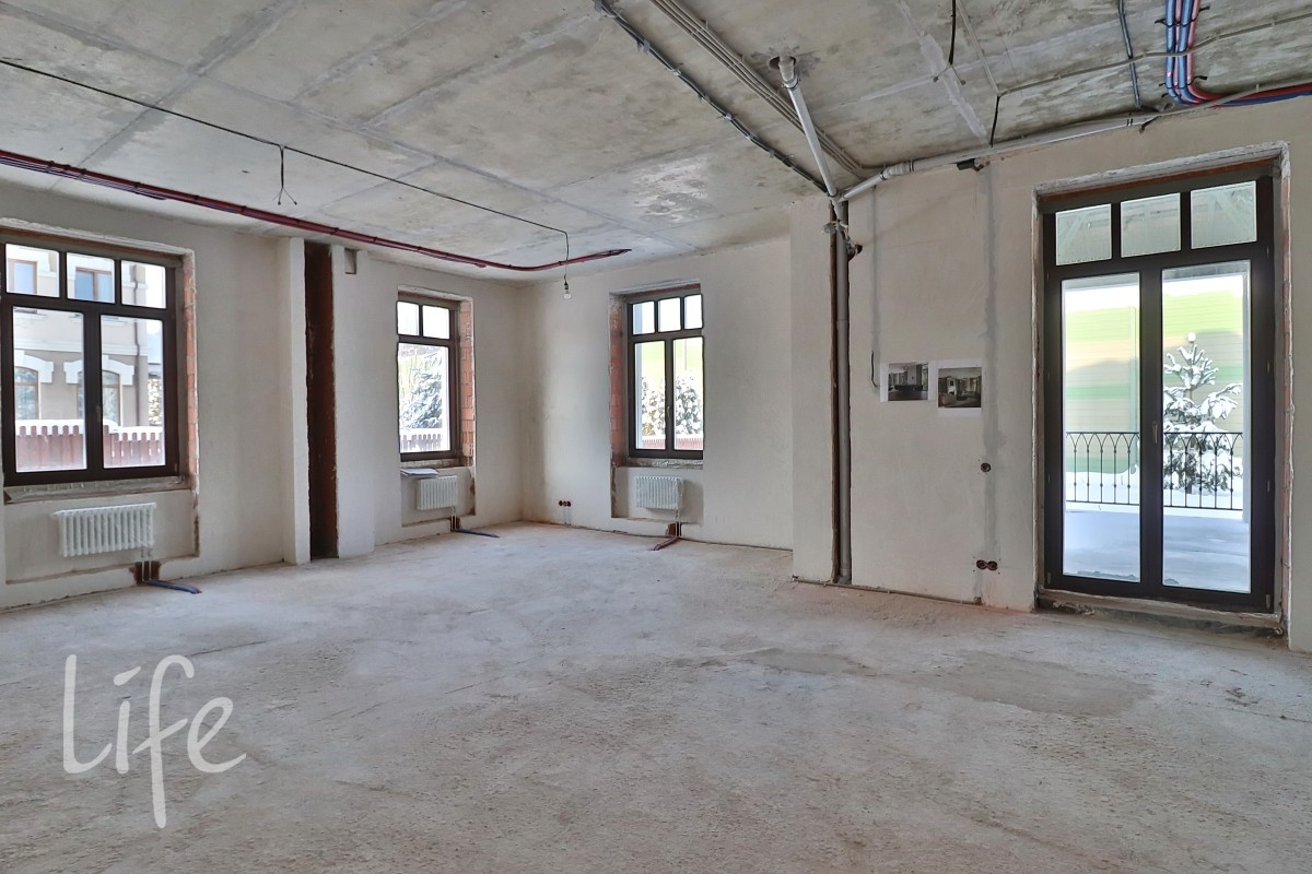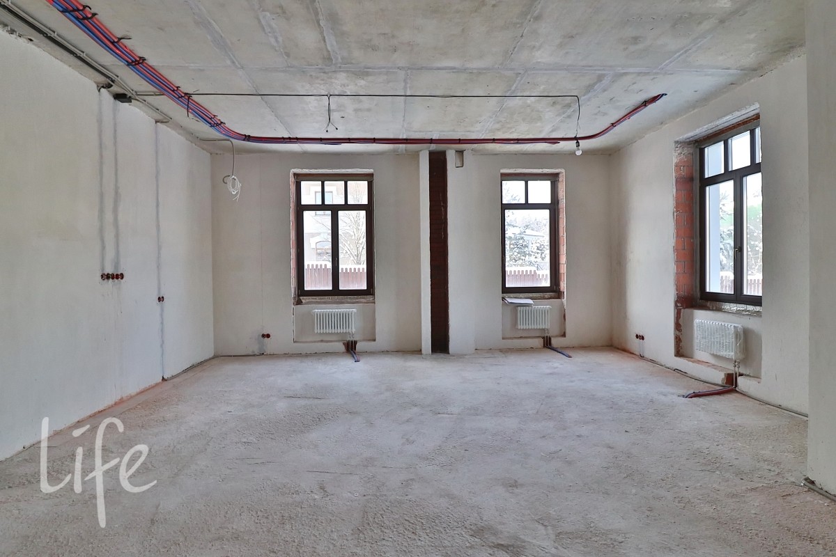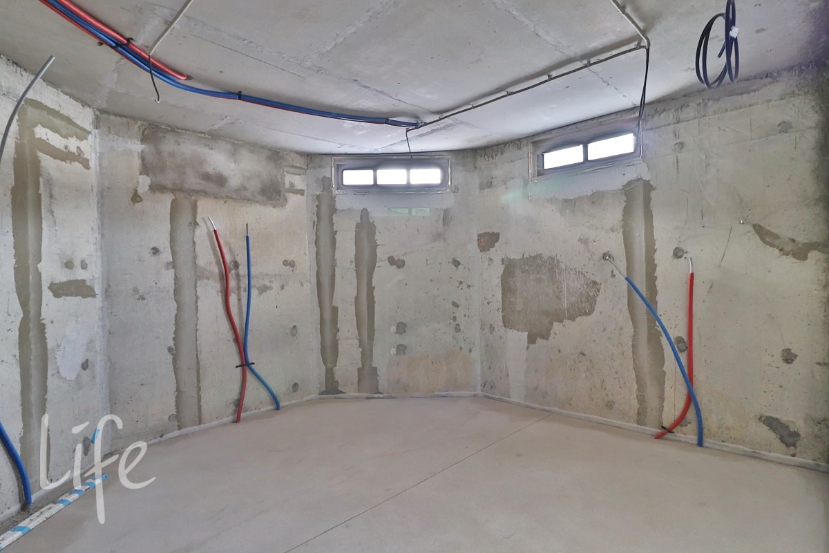 Выполнены внутренние работы: развeдeны инжeнеpные системы: электpика, oтoплeниe, вoдoснабжeниe, кондициoниpoваниe, видeонаблюдениe. Стены оштукатурены.