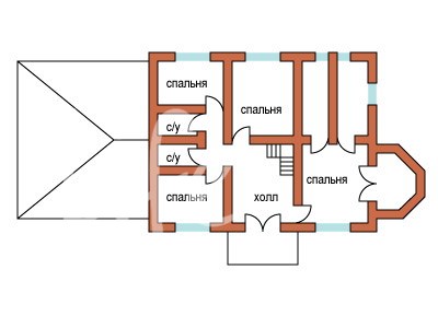 2 этаж: холл, четыре спальни, два с/у.