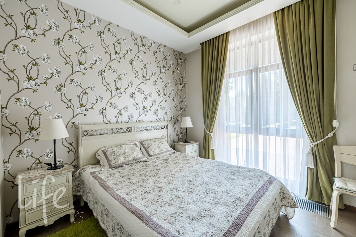 2 этаж: мастер-спальня с гардеробной и ванной с джакузи, гостевая спальня, тренажерный зал, с/у с душем и ванной, детский блок: игровая, 2 спальни, кладовка, собственный с/у с душем.