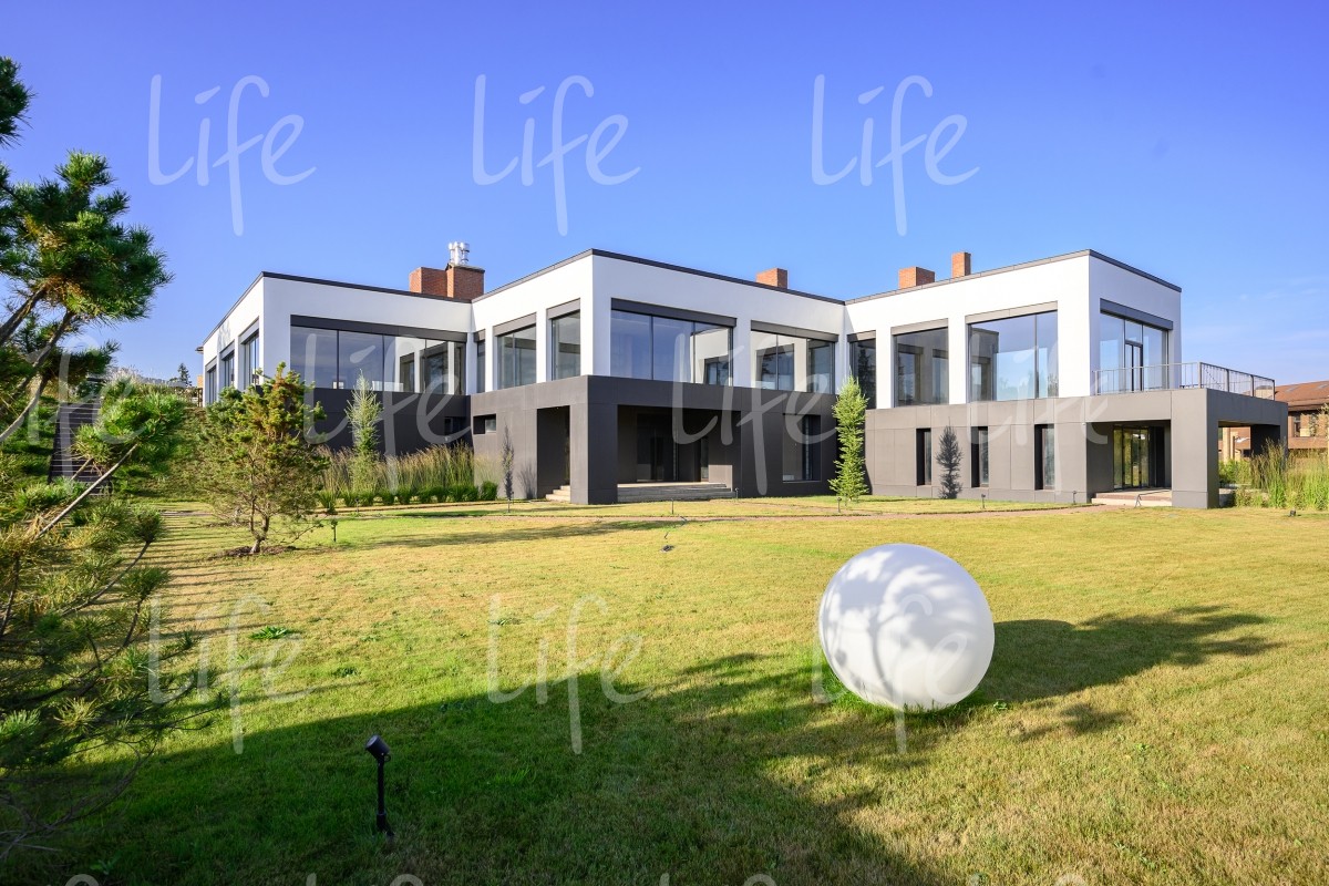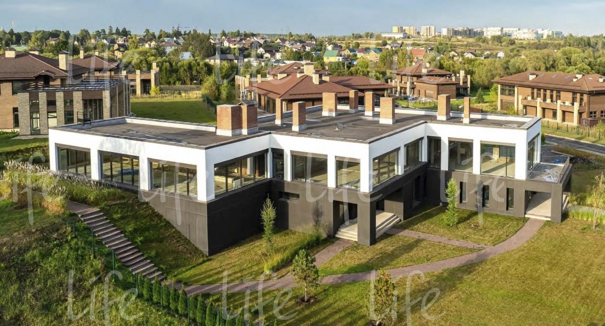 Современный двухэтажный дом 940 кв.м “под отделку” со свободной планировкой на солнечном участке 28 соток в клубном элитном поселке «Усадьба Бергов» в 23 км от МКАД на Киевском шоссе. Скоростной доступ по платной М-1 трассе “Северный обход Одинцова” и проспекту Багратиона от Москва-Сити.
