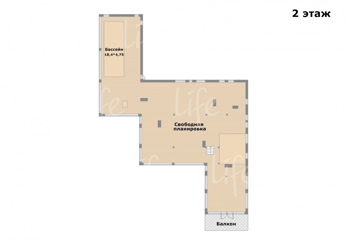 Предусмотрен бассейн 18,4х4,75 м Особенность дома - благодаря рельефу есть выход на участок с обоих этажей.