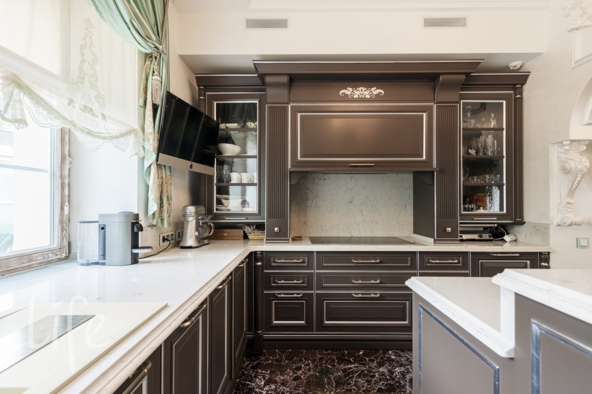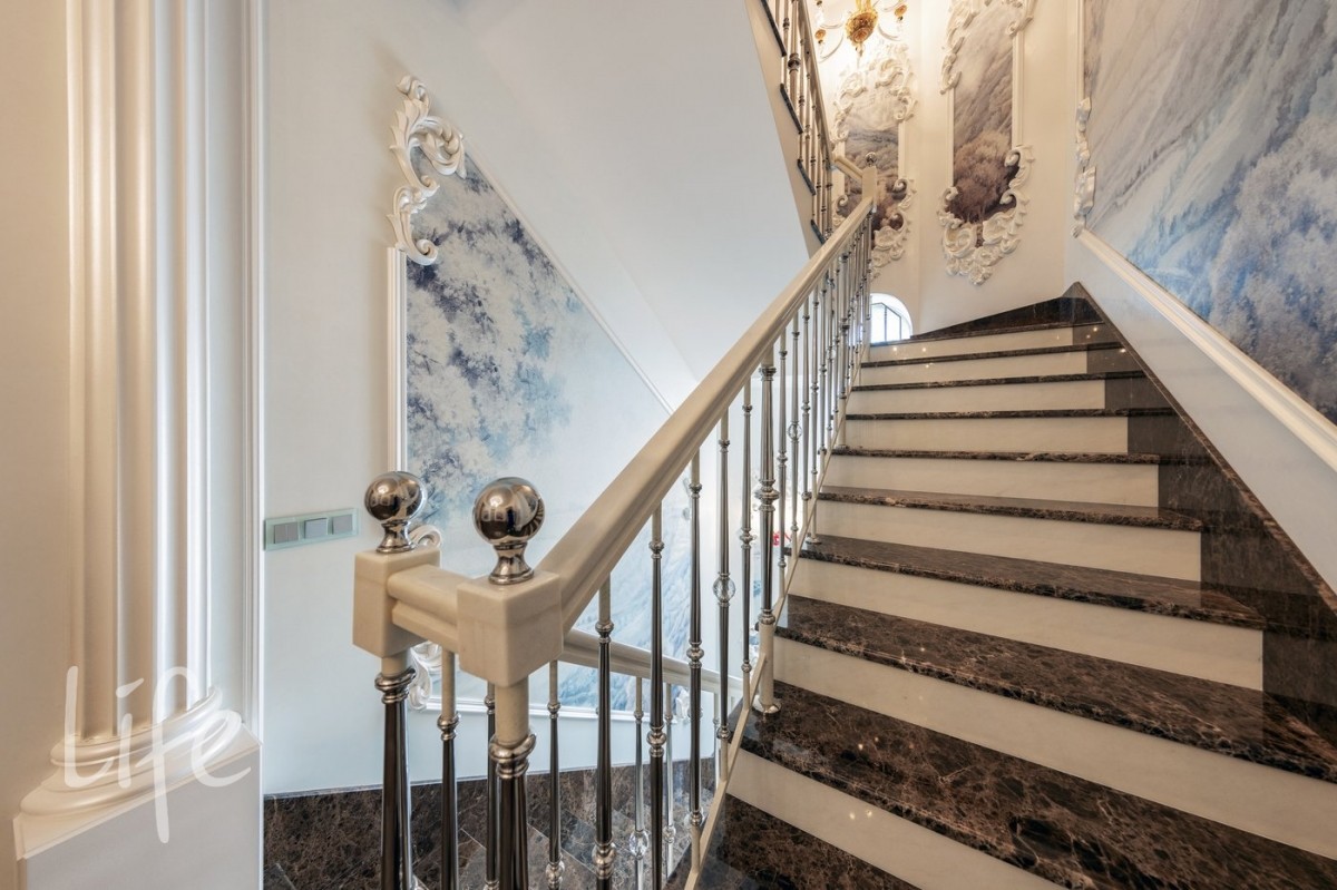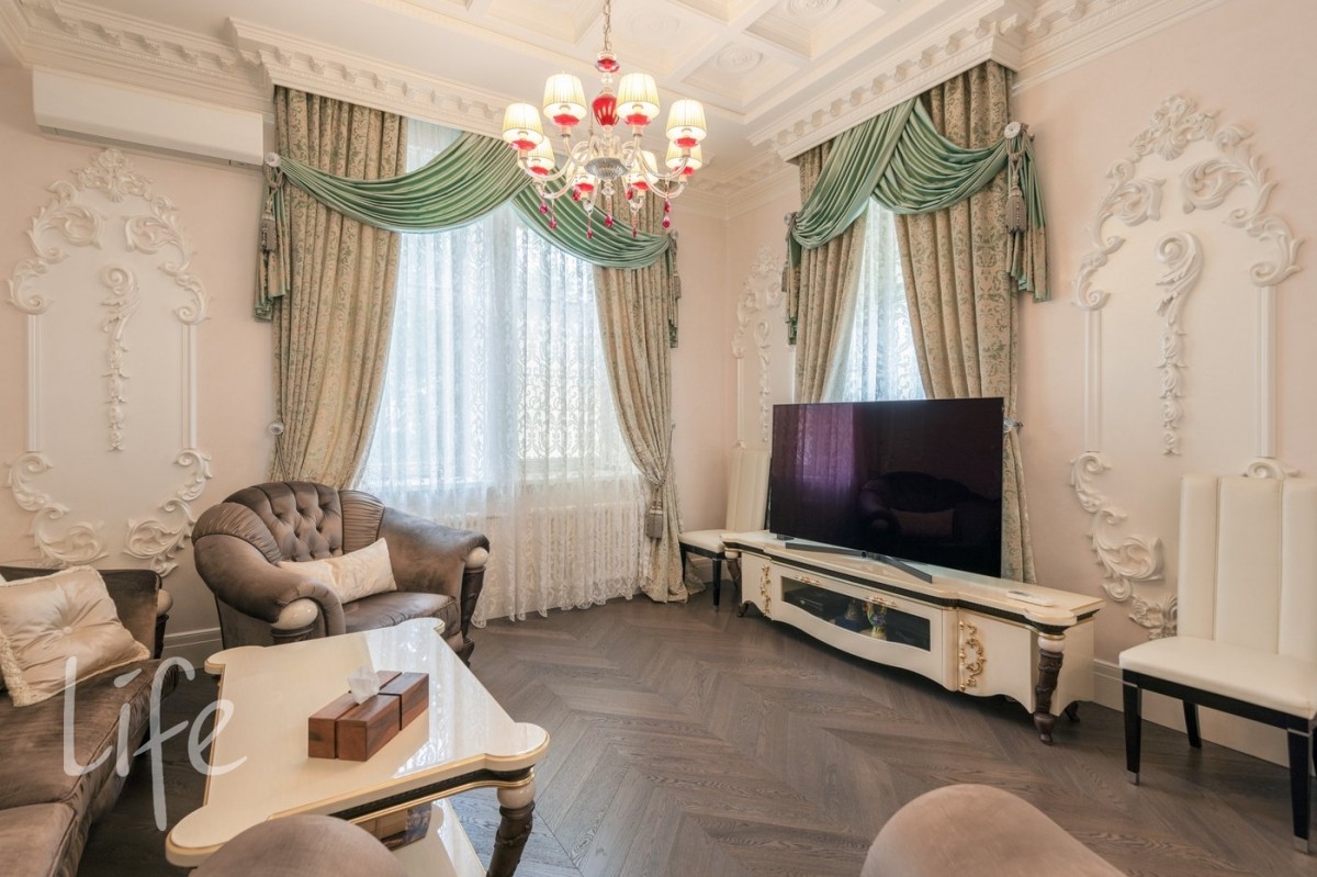 В доме выполнен высококачественный ремонт премиальными материалами вклассическом стиле.