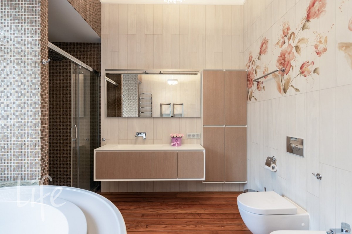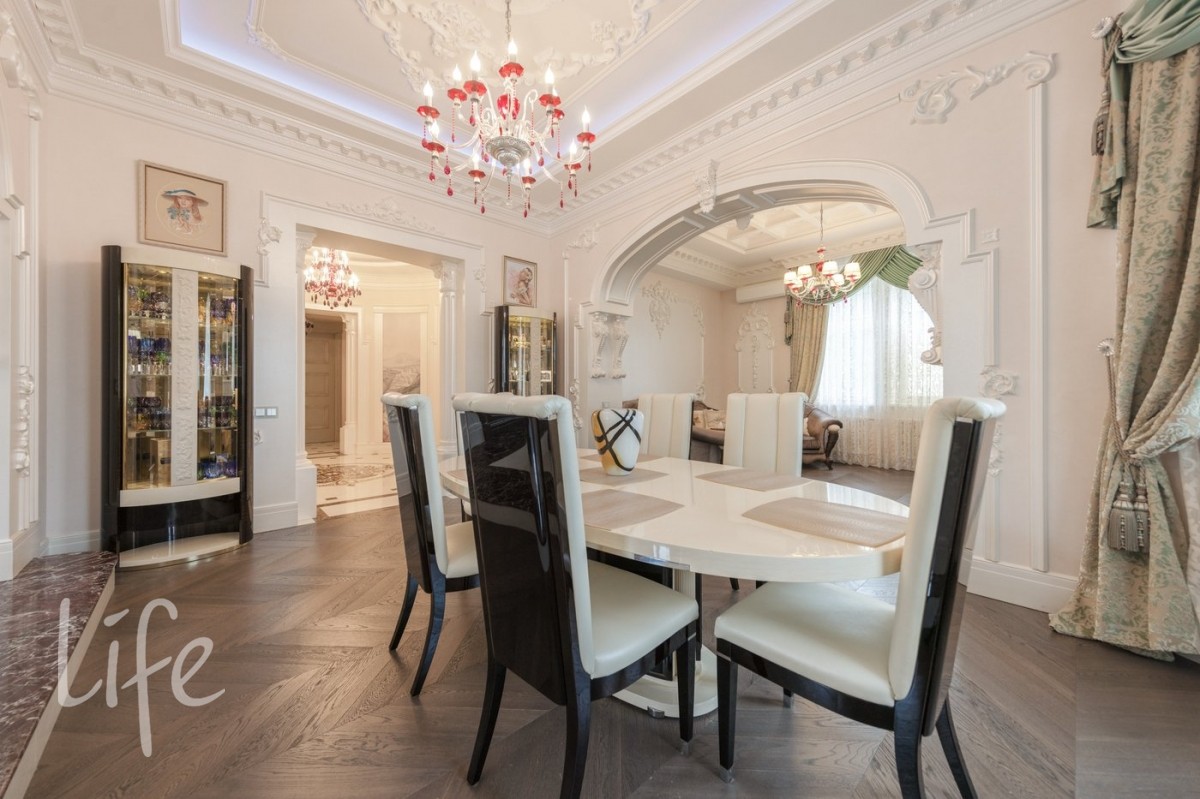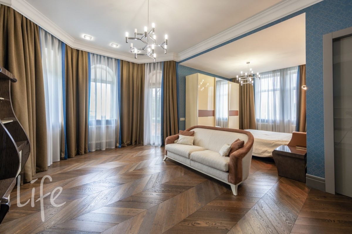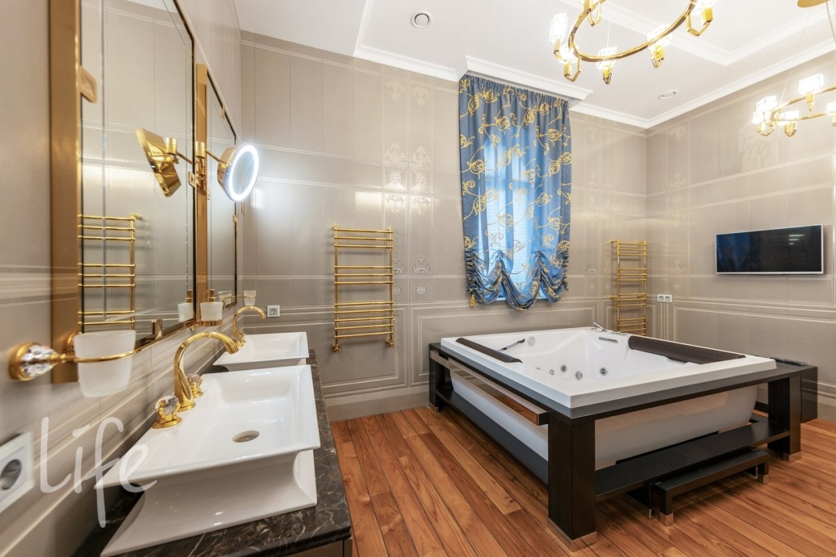 В доме выполнен высококачественный ремонт премиальными материалами вклассическом стиле.