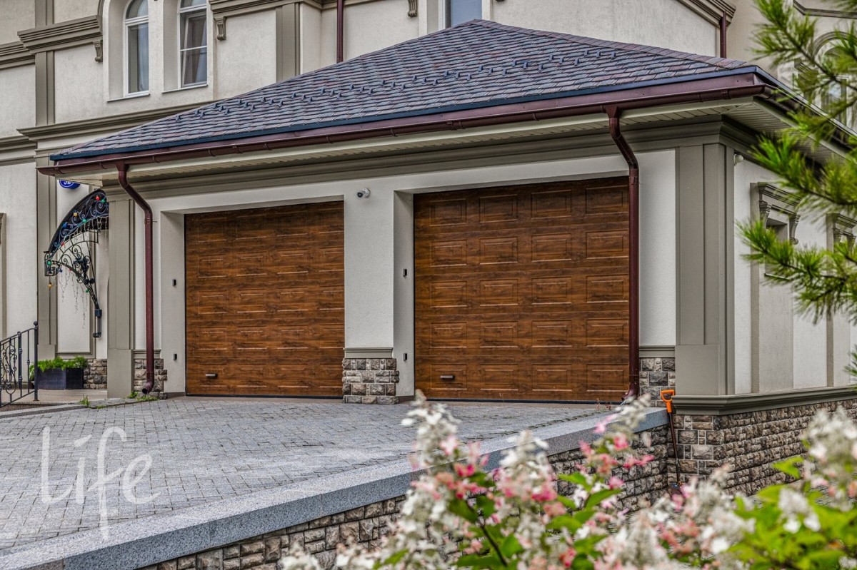 На просторном приватном участке выполнен ландшафтный дизайн, установлены системы дренажа и автополива.