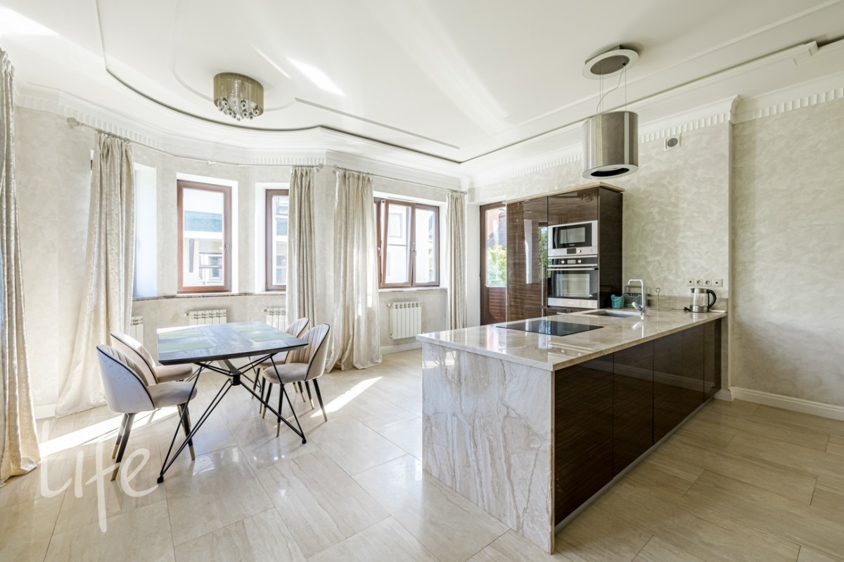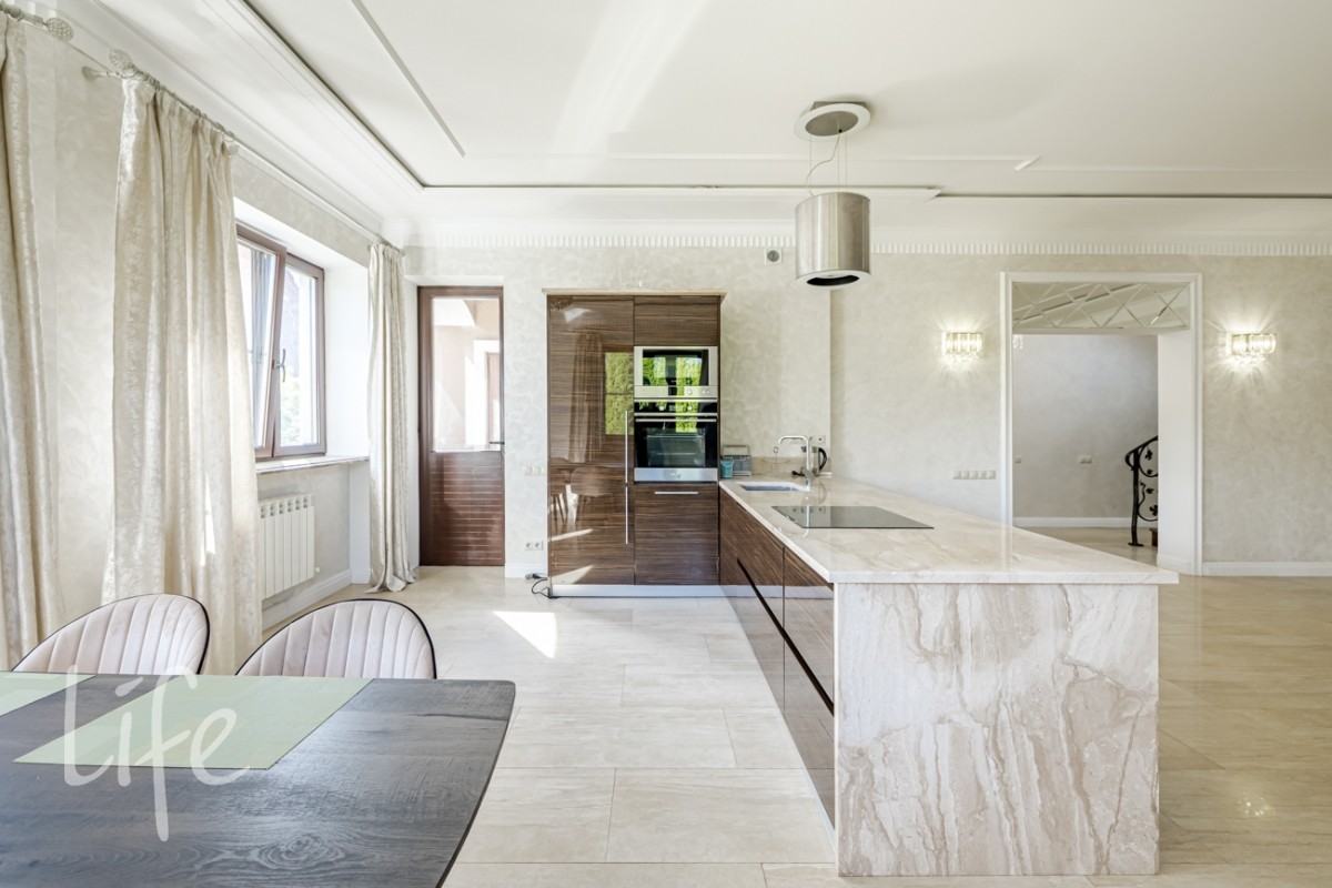 Высокой качество отделки интерьера - мраморные подоконники, столешницы, окна- натуральное дерево. Приятная атмосфера домашнго уюта.