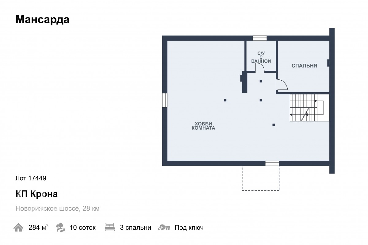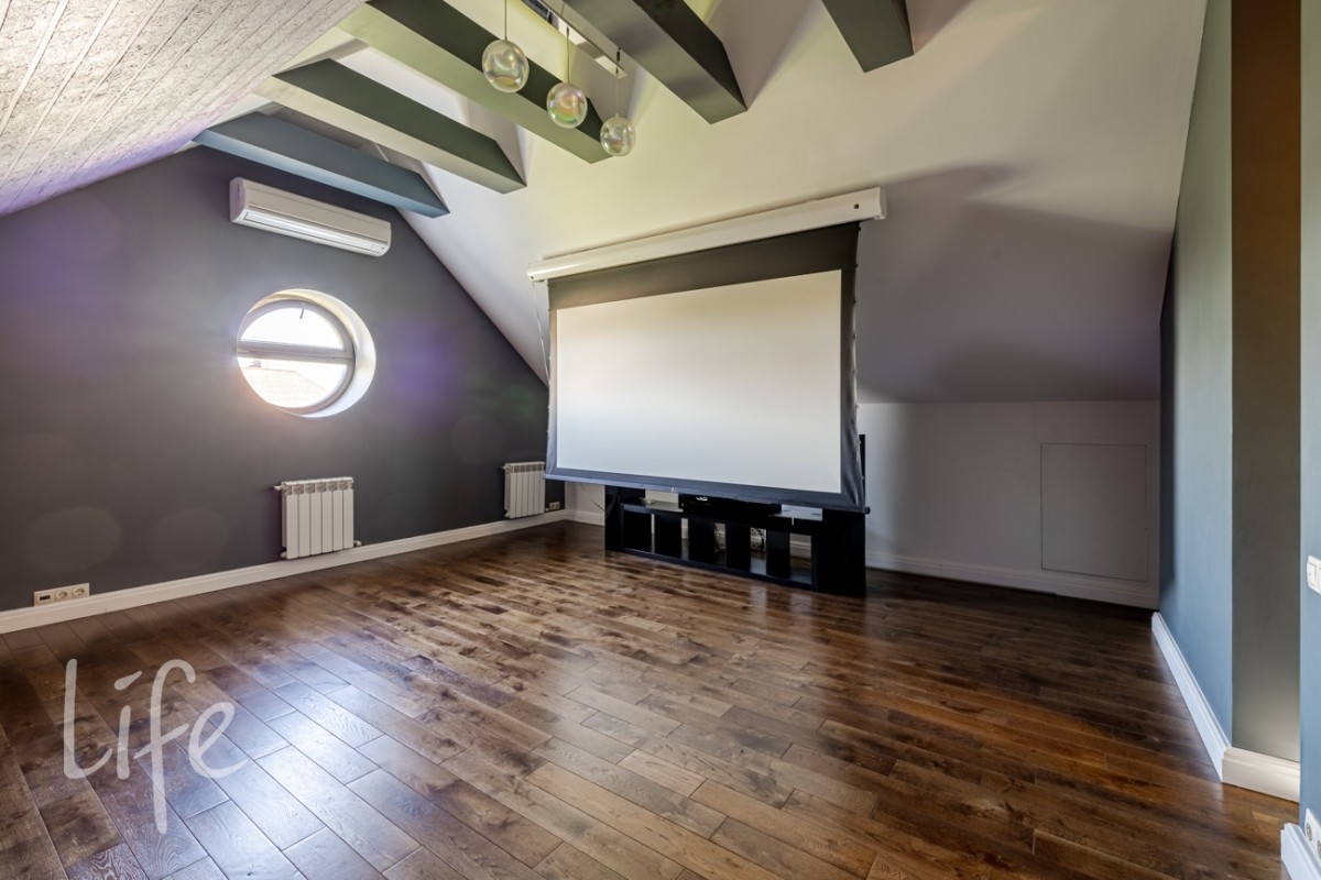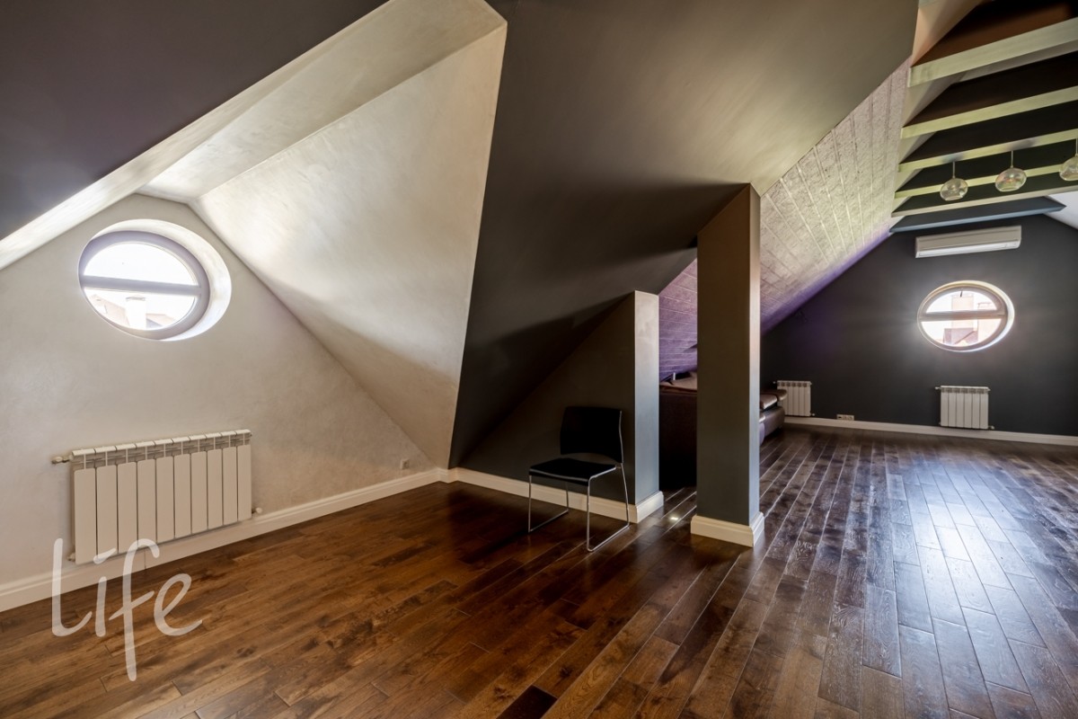 Мансарда: жилая зона с отдельной спальней, с/у с джакуззи, лаундж-гостиной.