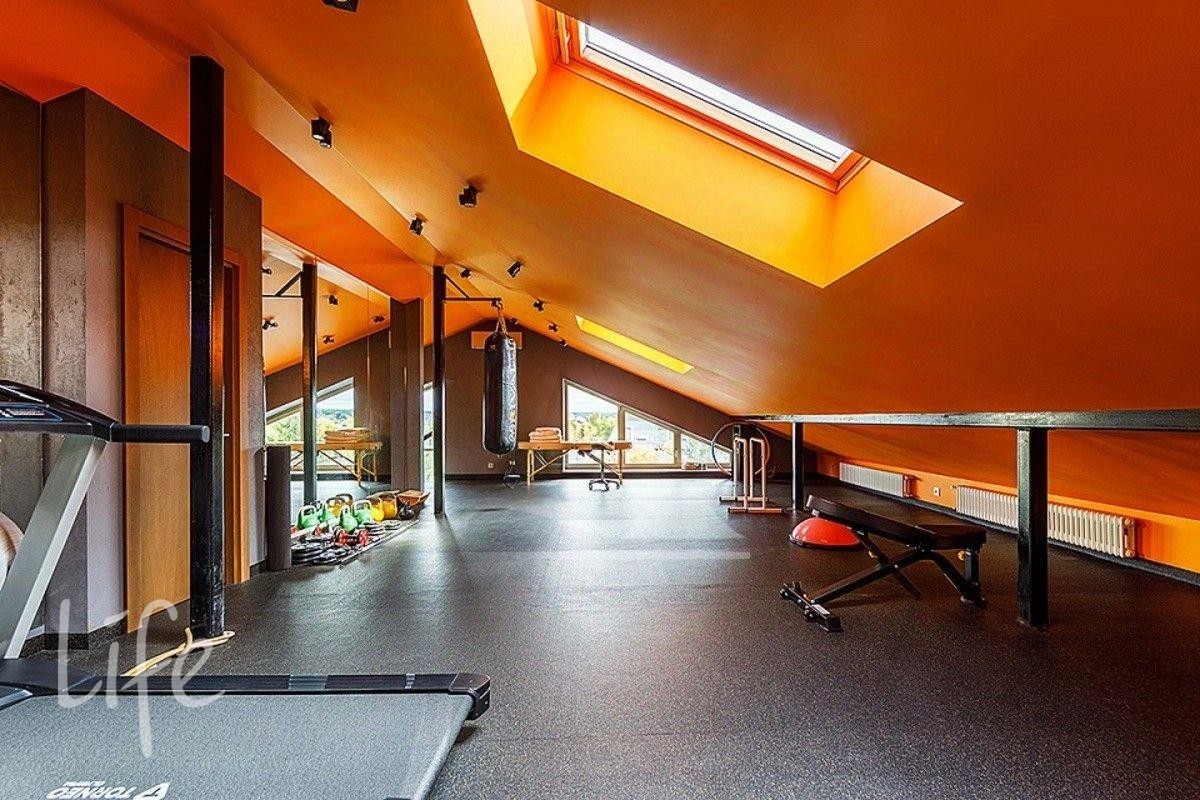 Мансарда: современный спортзал, сауна, лаунж-зона для отдыха.