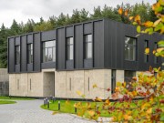 1 этаж: холл, гардеробная, гостиная-кухня-столовая, рабочая кухня с техническим помещением, кабинет, блок с двумя спальнями, с/у и гардеробной, помещение свободного назначения с сауной и санузлом, терраса, с/у.