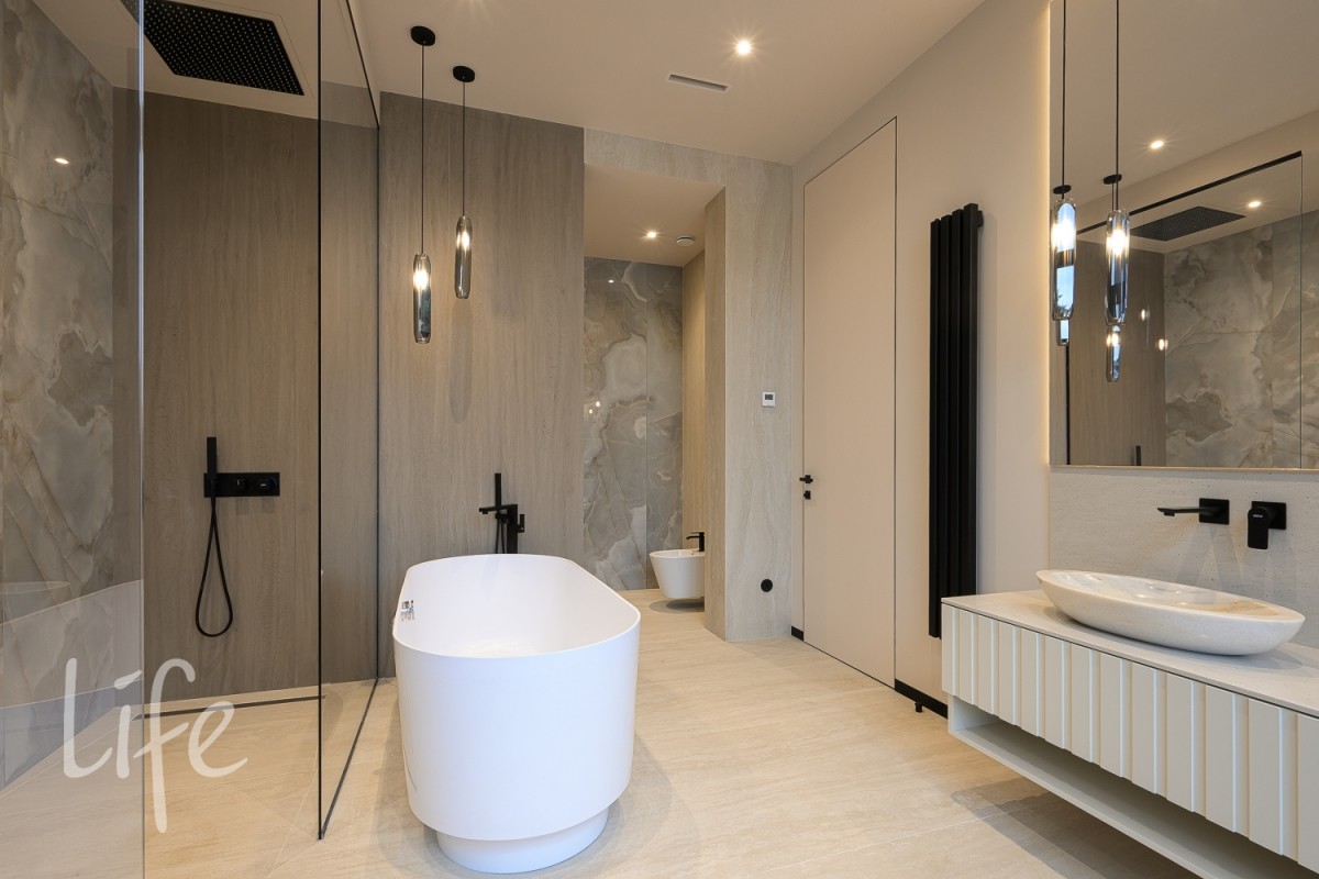 Все центральные коммуникации. Теплый пол в с/у и зоне прихожей, канальное кондиционирование.