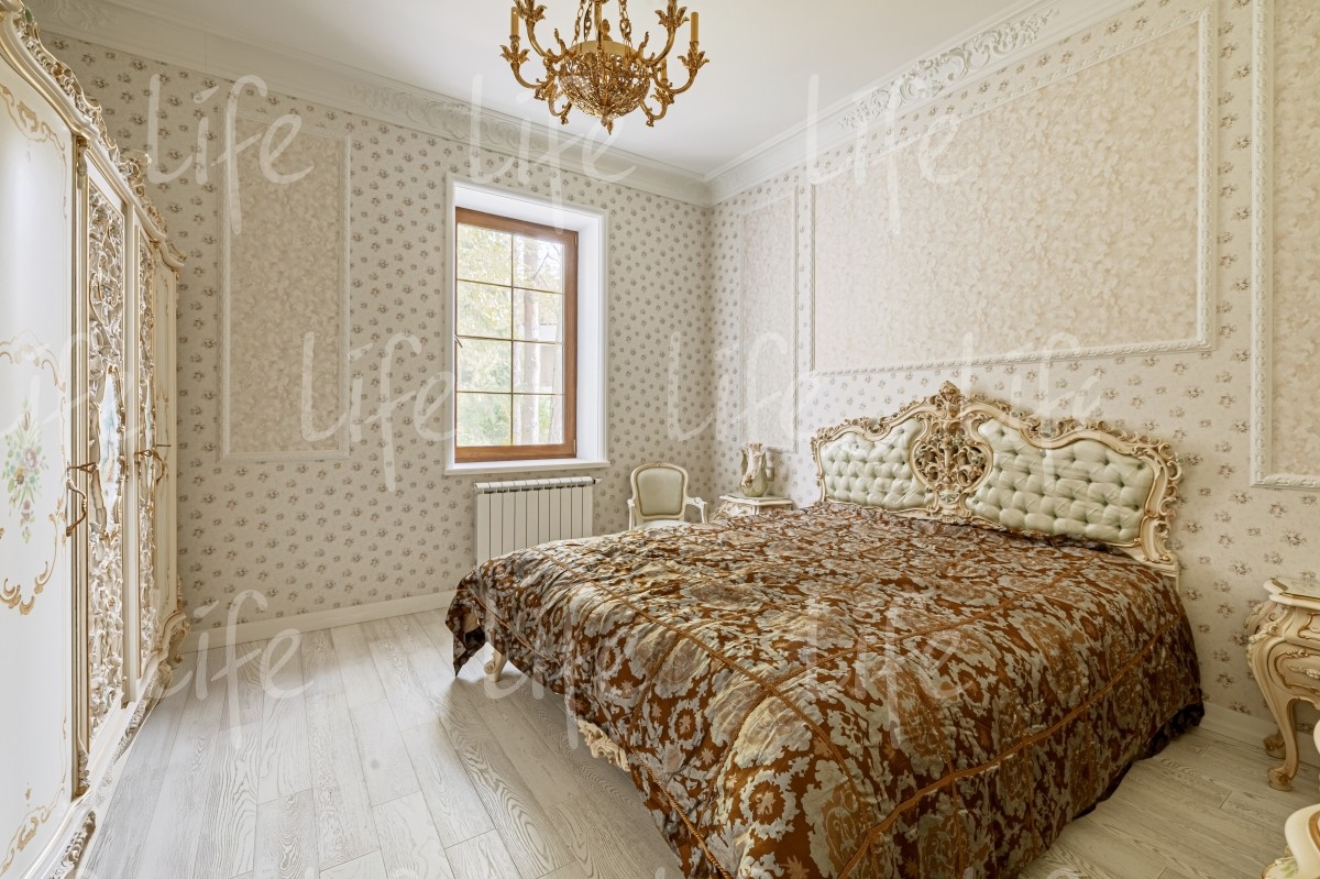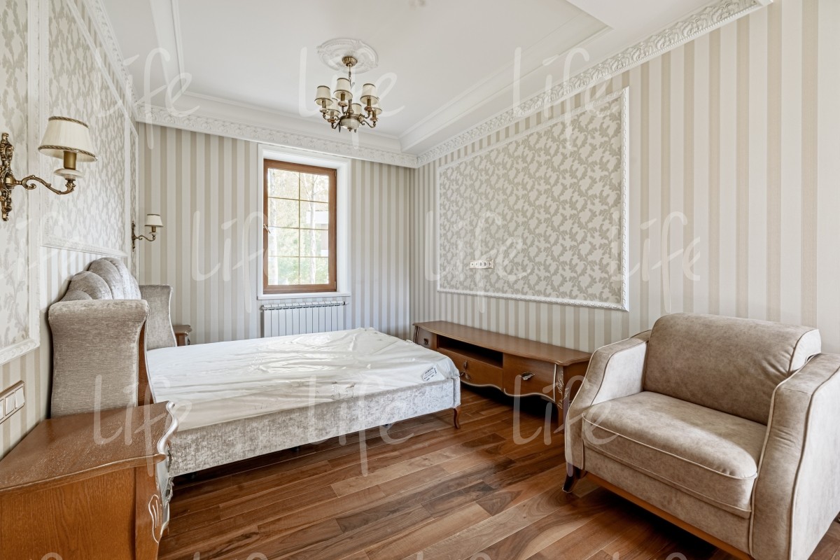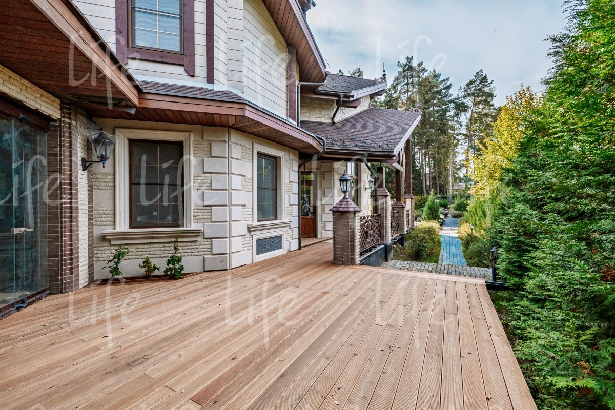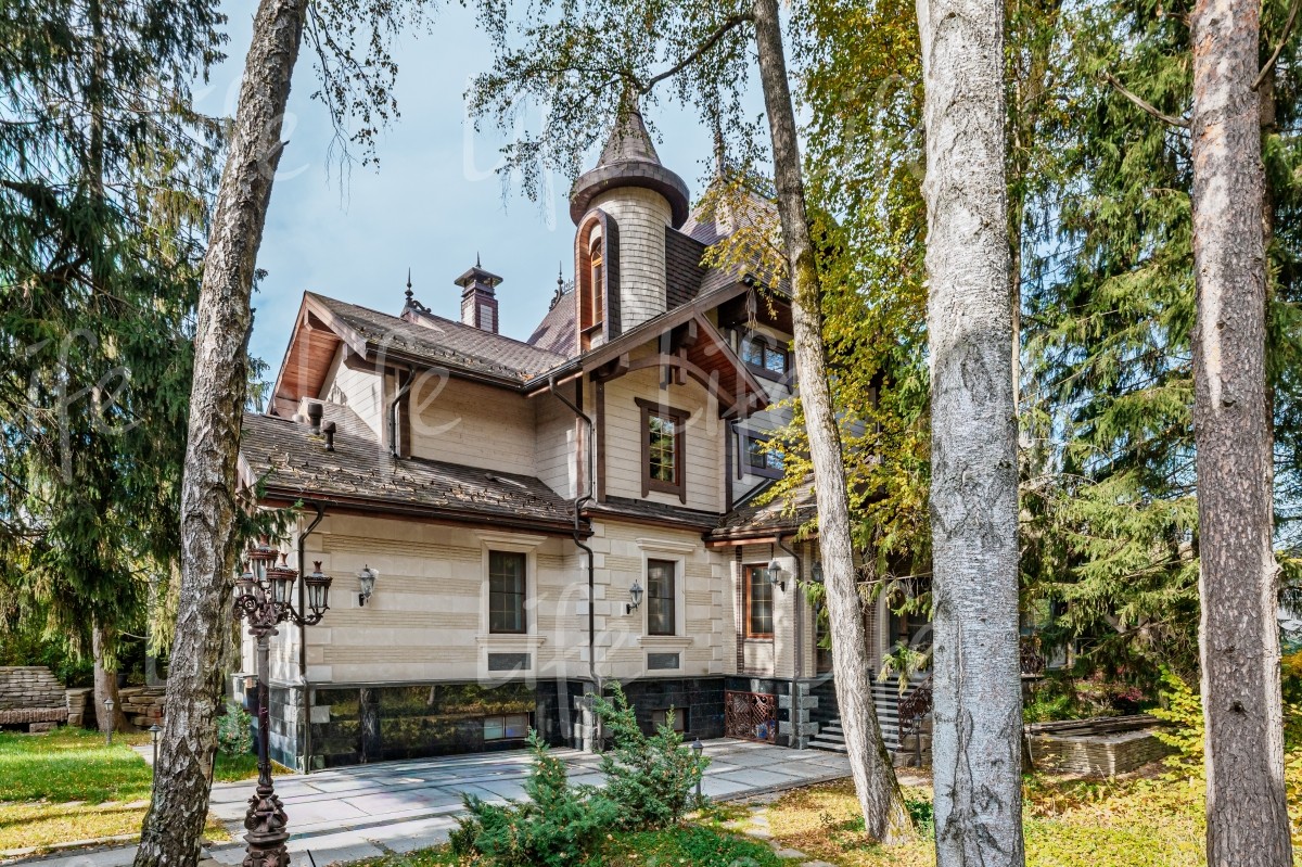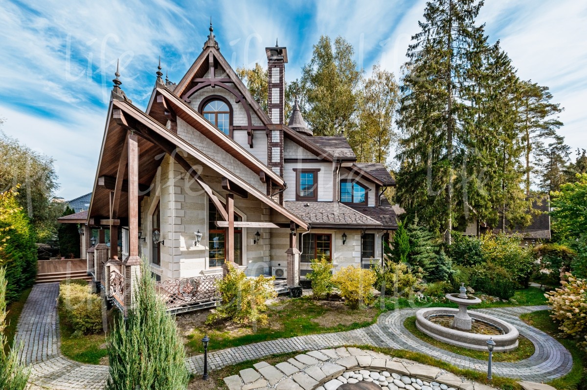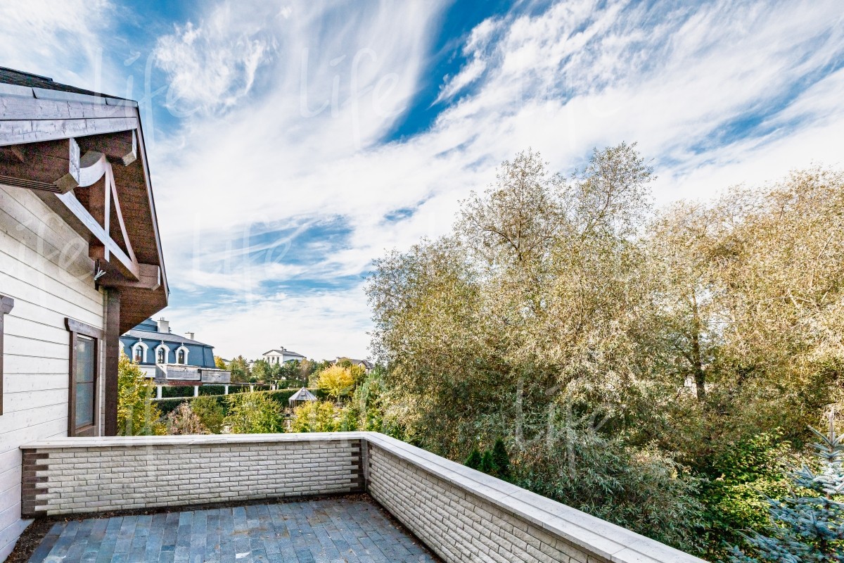 Коттеджный поселок премиум-класса «Ренессанс парк». Для тех, кто ценит всё натуральное, здоровое, природное. Загородный дом, построенный в французском (нормандском) стиле, из комбинированных материалов: первый этаж — керамический блок, второй этаж — высококачественный сосновый брус сечением 240/240 мм. Первый этаж выполнен практически под ключ (кроме кухни), установлена мебель, второй этаж дерево — выполнена чистовая отделка, мансарда — полностью под ключ.