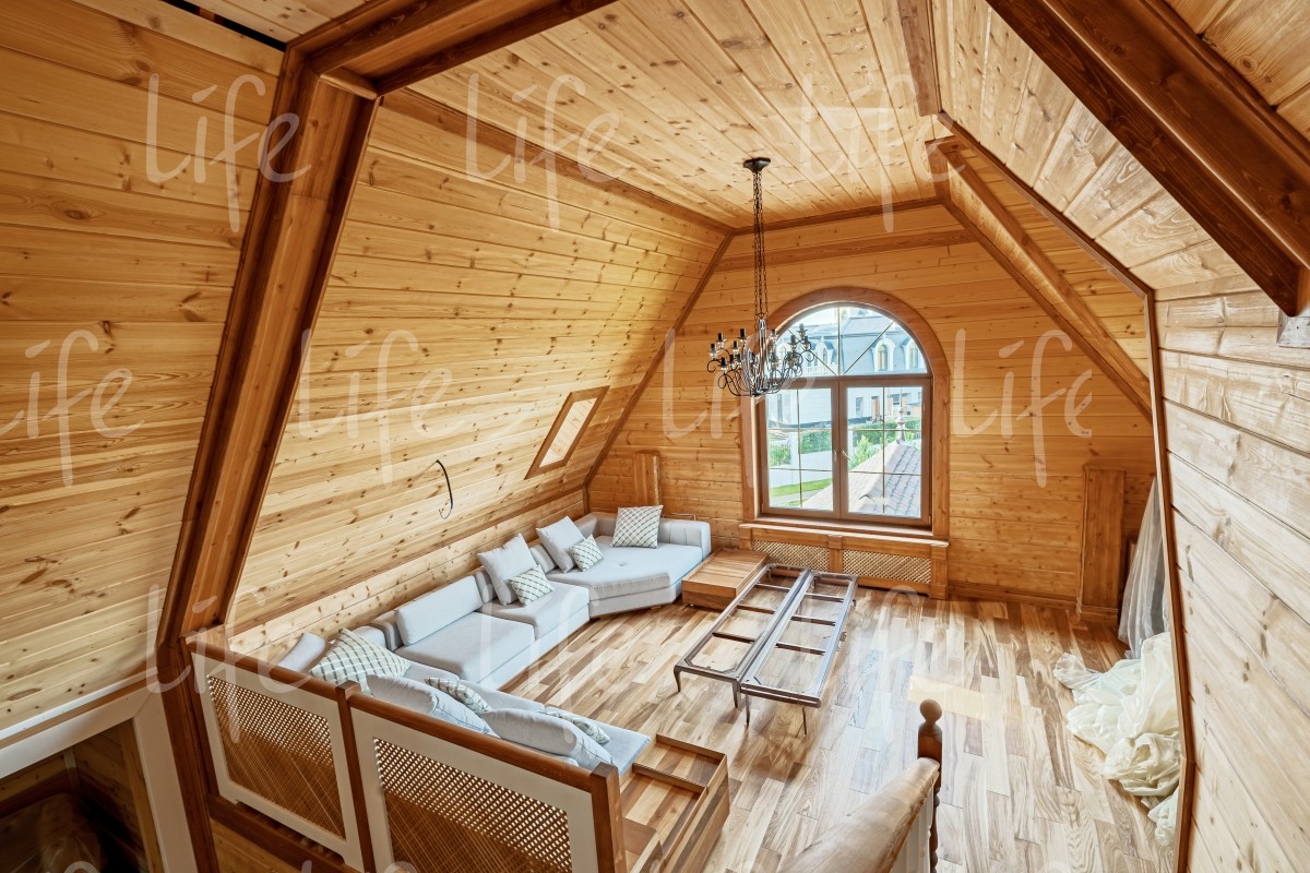 Мансарда: два помещения (зона отдыха/домашний кинотеатр), с/у.