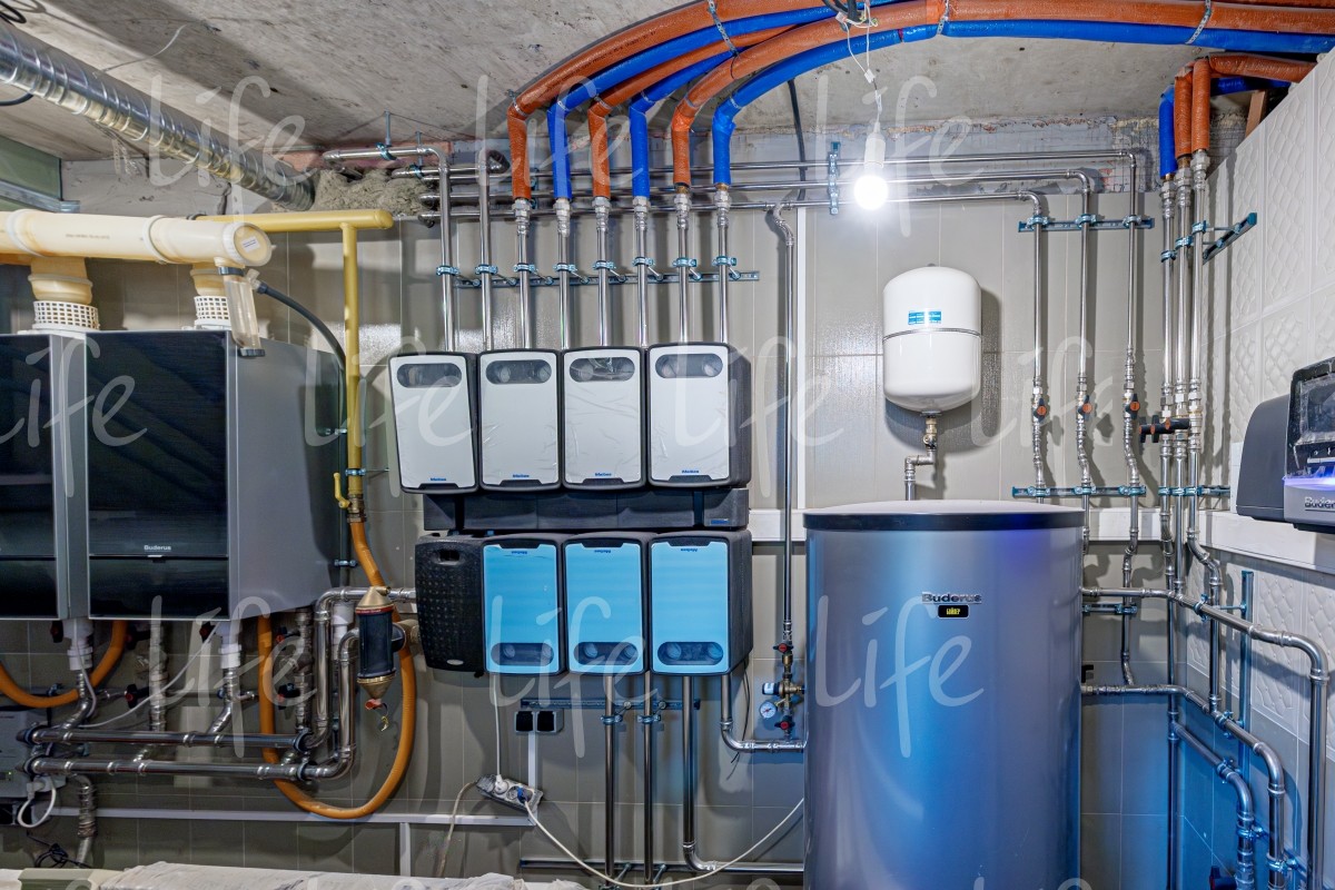 Все центральные коммуникации. Электричество 35 кВт, своя автономная скважина, современная вентиляционная система Renson.