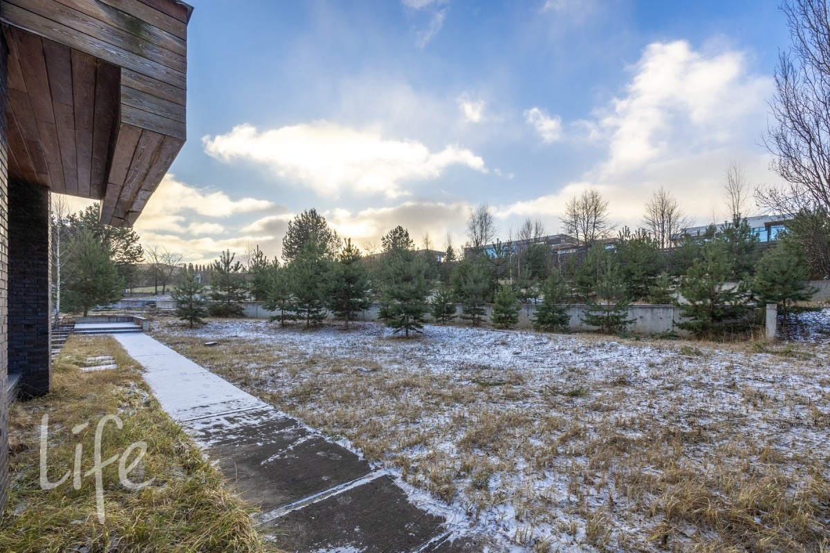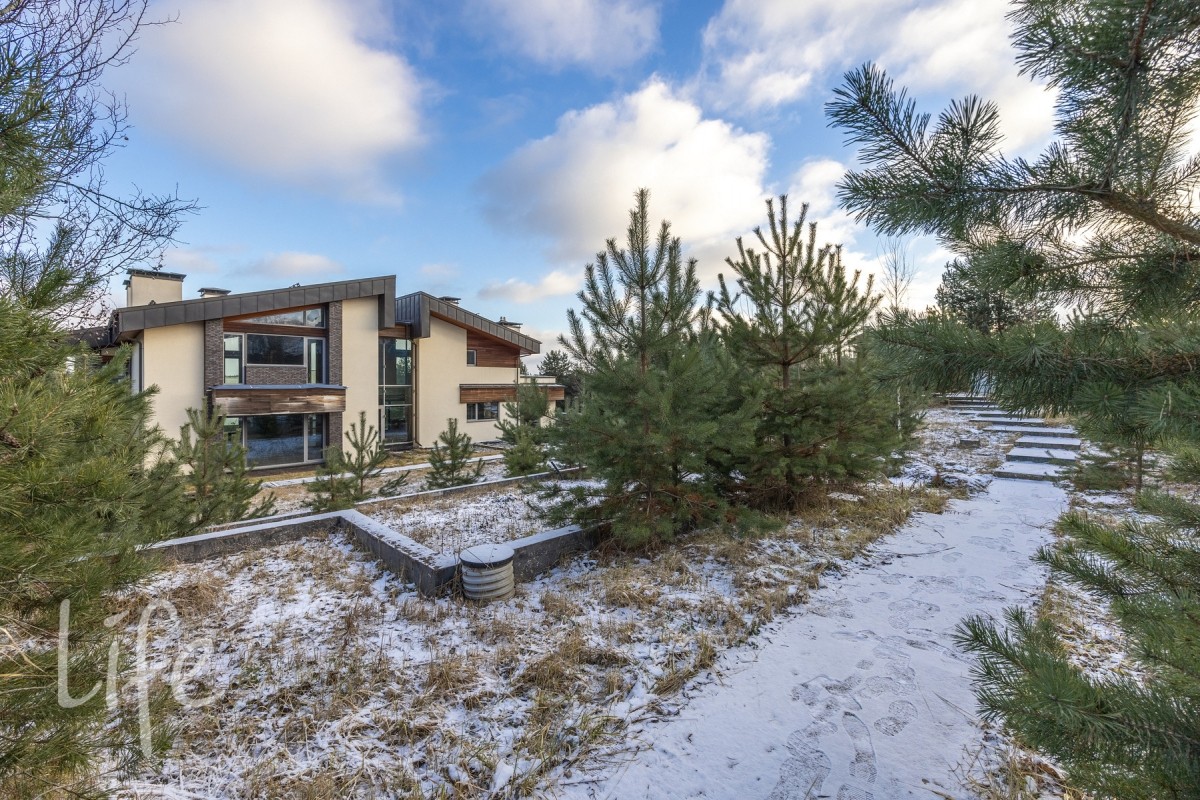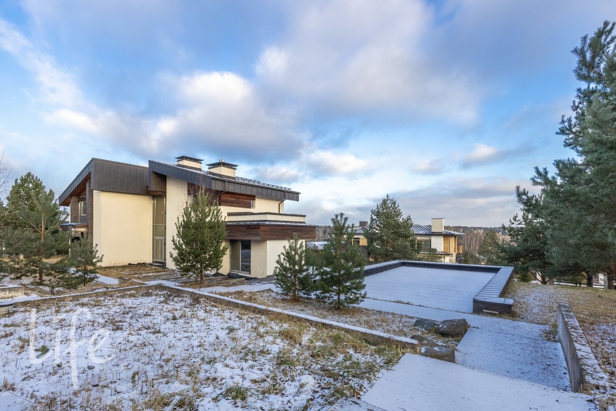 Дом удачно расположен в верхней части рельефа, что создаёт ему уникальные панорамные виды на внутреннюю территорию посёлка.