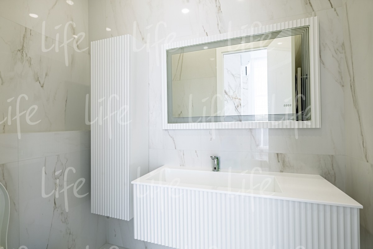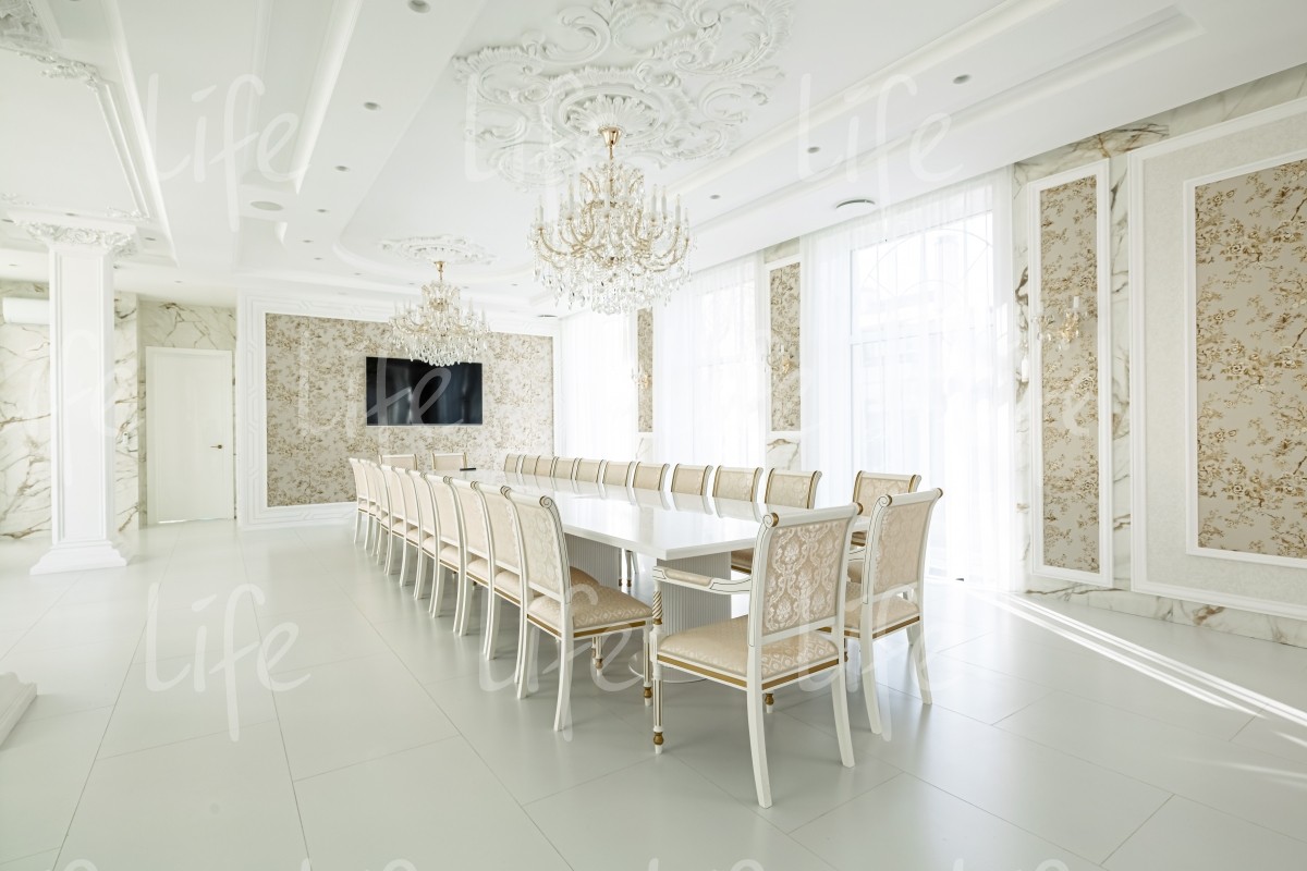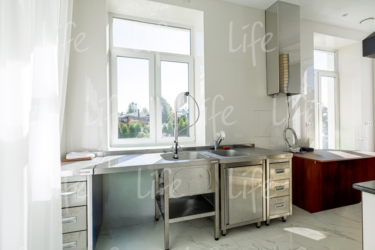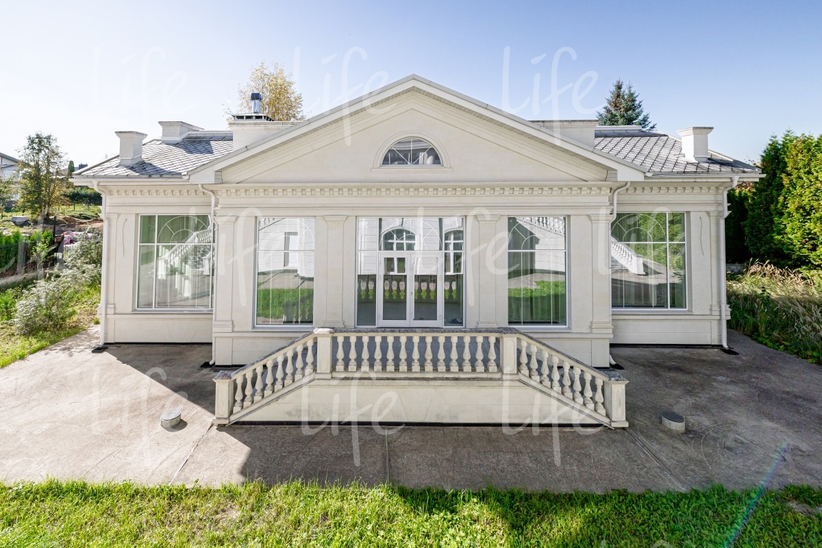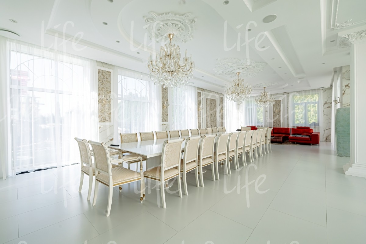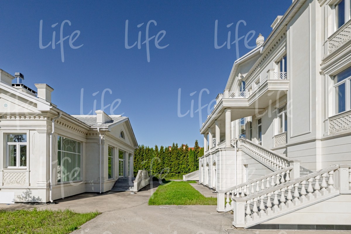 Элитный коттеджный поселок «Миллениум парк». Роскошная усадьба под внутреннюю отделку в состоянии «White box», есть готовый дизайн-проект с восточными «нотками». Оштукатурены стены, разведены электричество, системы водоснабжения и канализации, система отопления (дом отапливается), система вентиляции и кондиционирования. В этом доме есть помещение под большой домашний кинотеатр, зимний сад, бильярдная и SPA-центр с хамамом и баней. Установлена система «Умный дом», которая управляется через интернет. Также есть шахта для лифта. Дом строился для личного проживания.