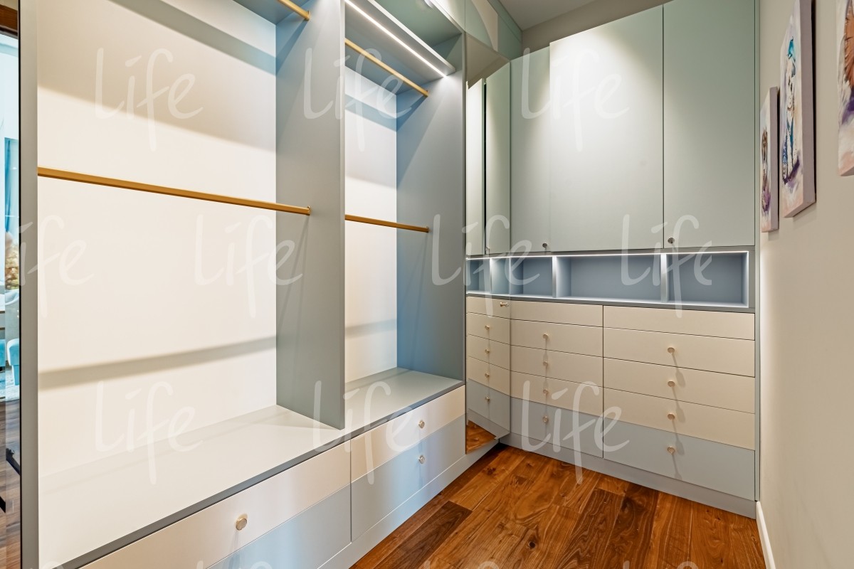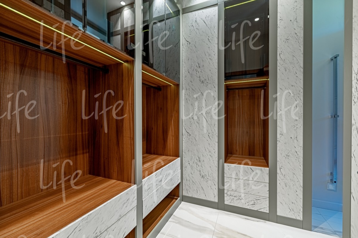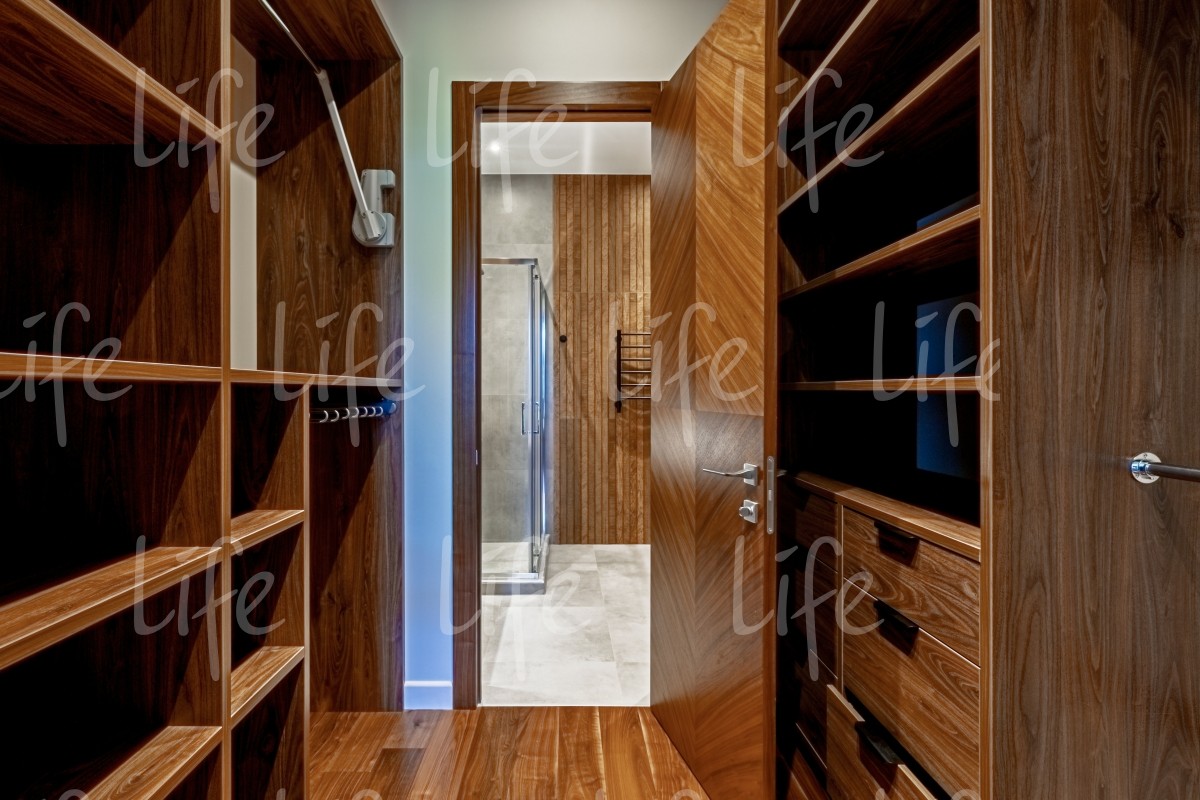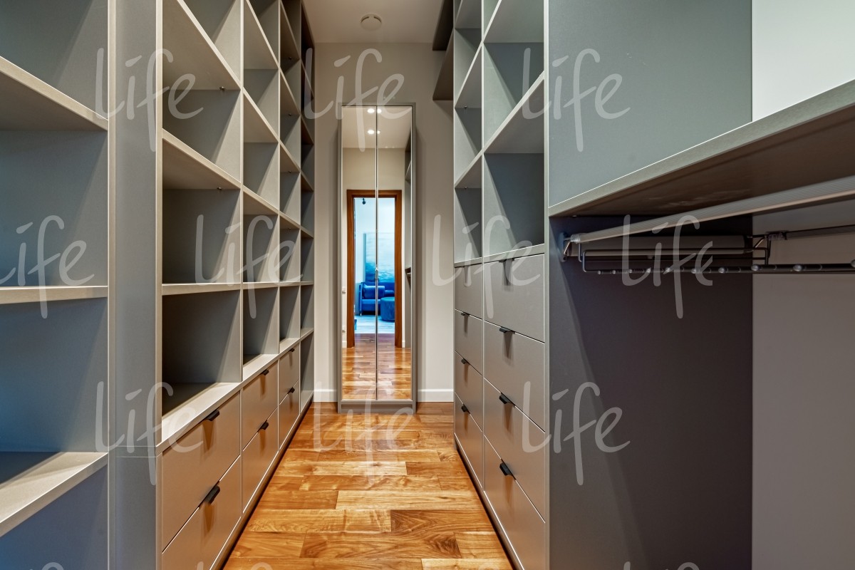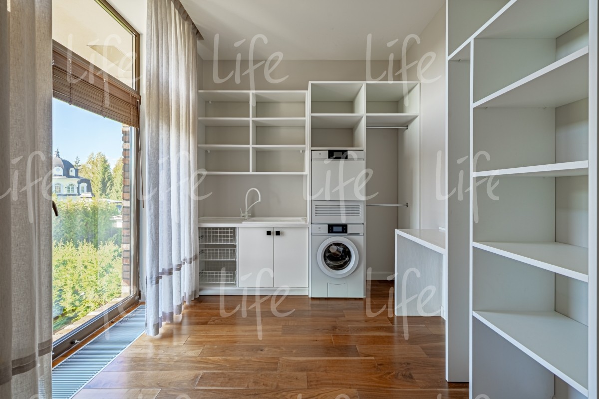 2 этаж: мастер-спальня с ванной комнатой, гардеробной и балконом, спальня с ванной комнатой, гардеробной и балконом, спальня с ванной комнатой и гардеробной, постирочная.