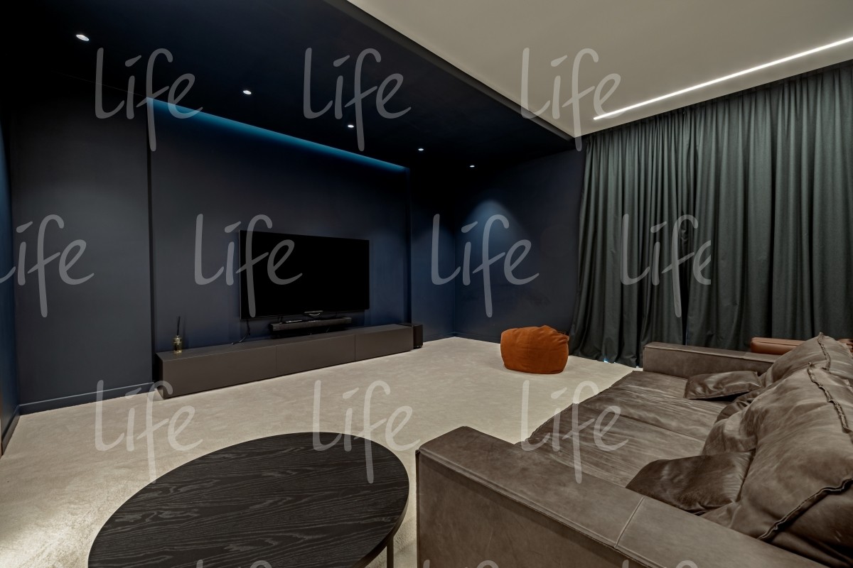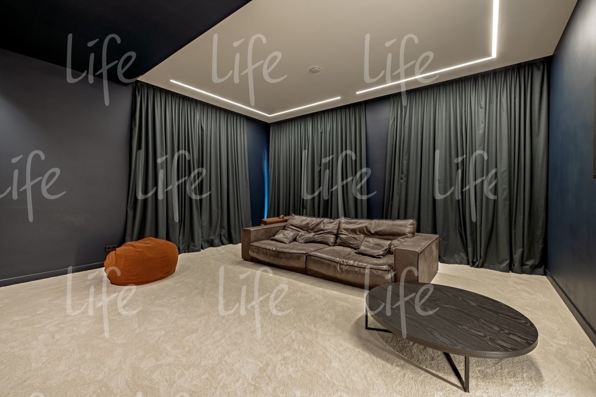 Дом удобно спланирован: четыре спальни, гостиная, домашний кинотеатр, фитнес-зал. Это делает проживание комфортным.