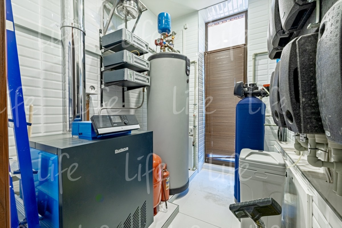 Все центральные коммуникации. Установлены газовый котёл «Buderus», система очистки воды и система «умный дом».