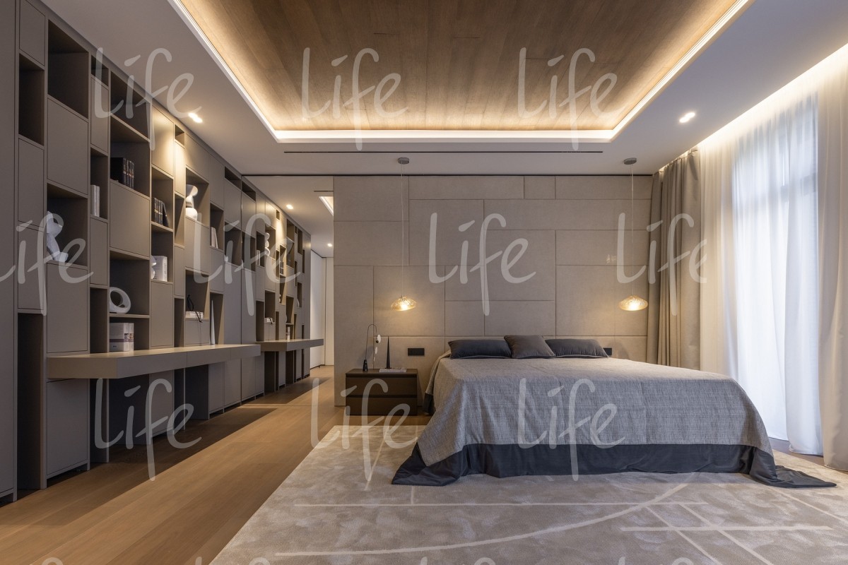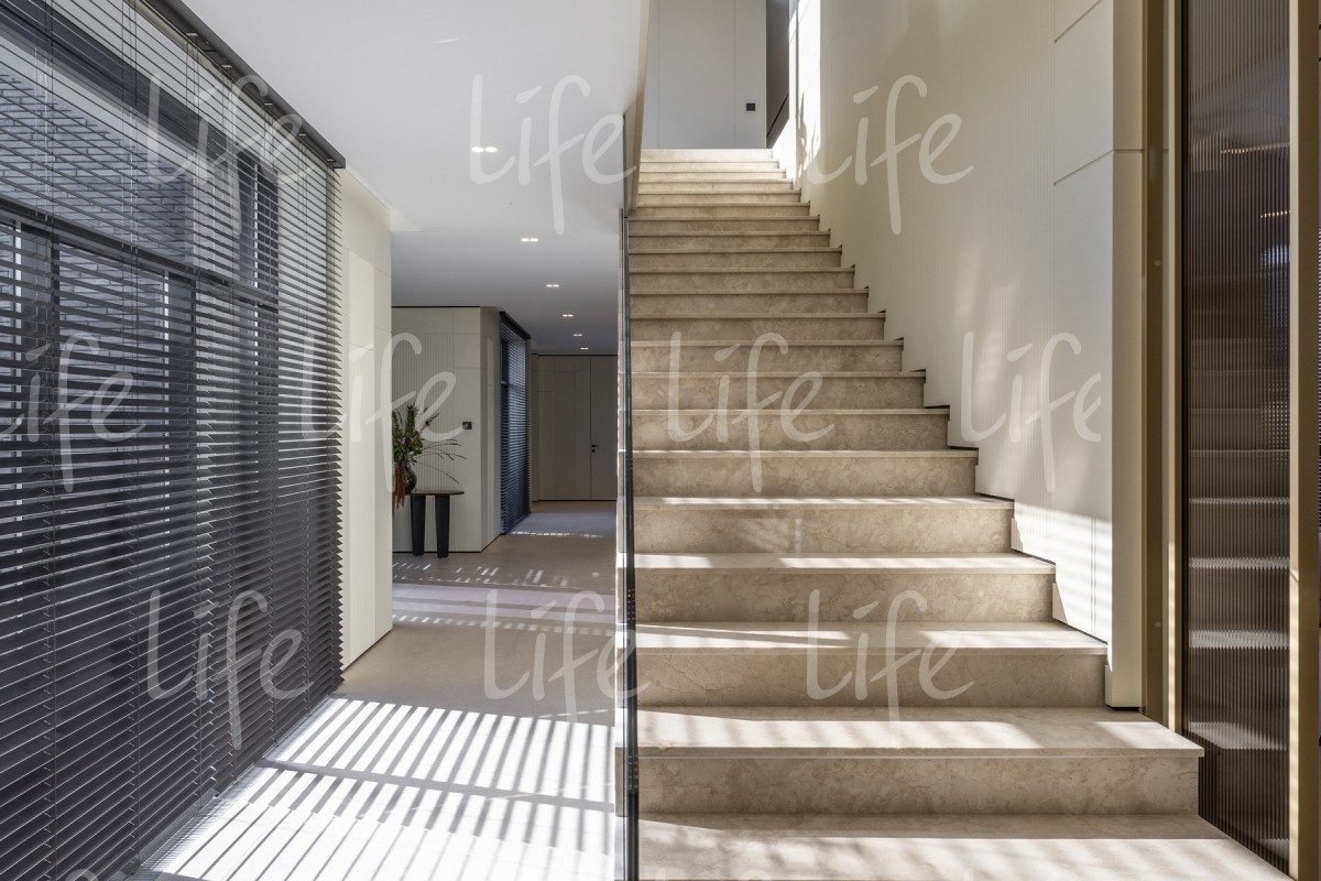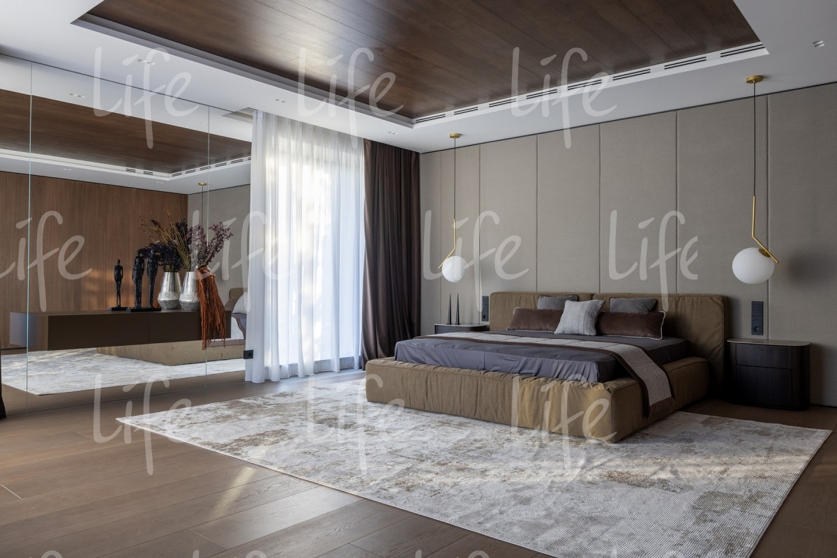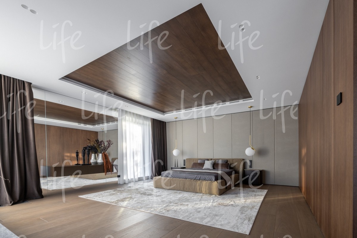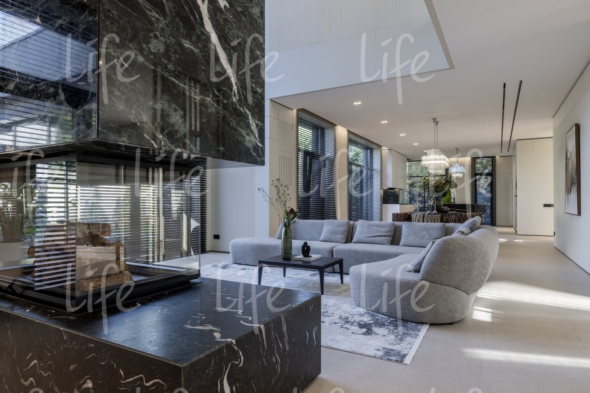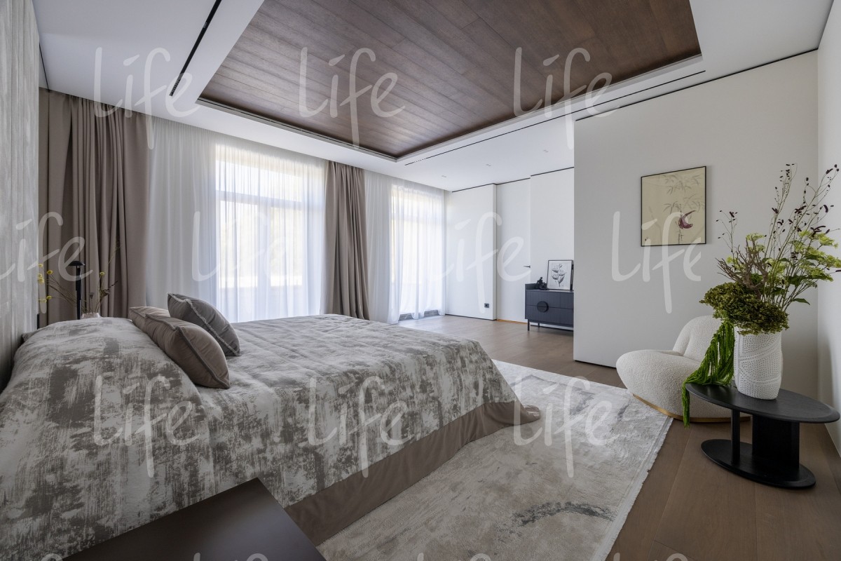 Удобная планировка, пять спален, гостиная со вторым светом, СПА-зона с бассейном обеспечивают комфортное проживание. Есть блок для персонала с двумя спальнями.