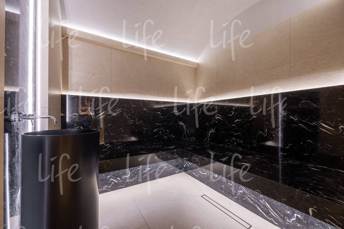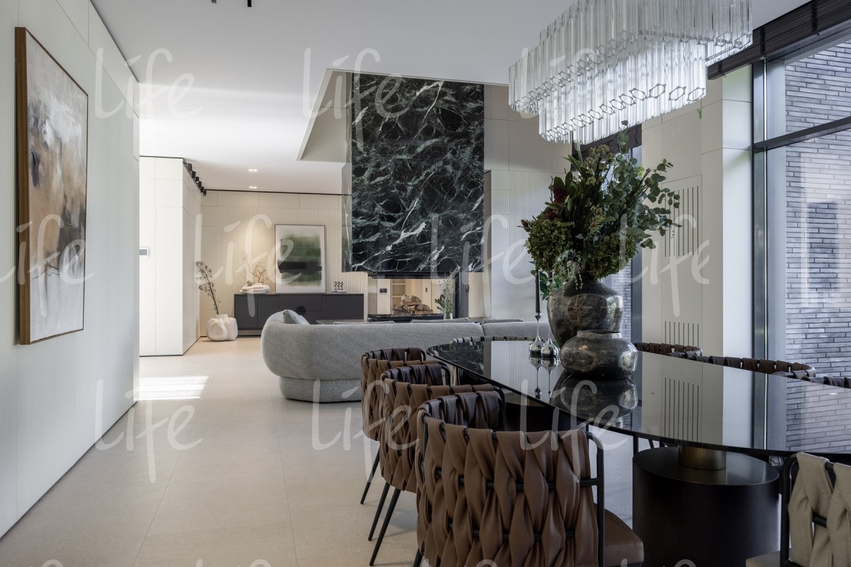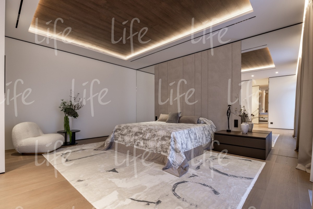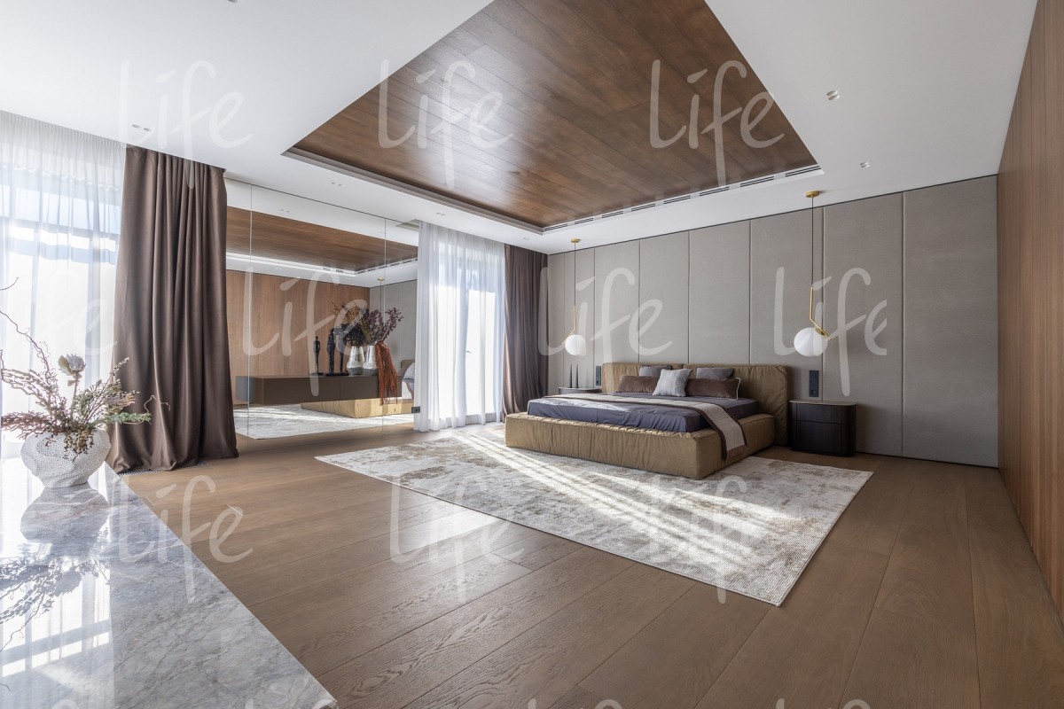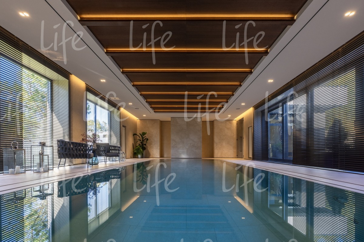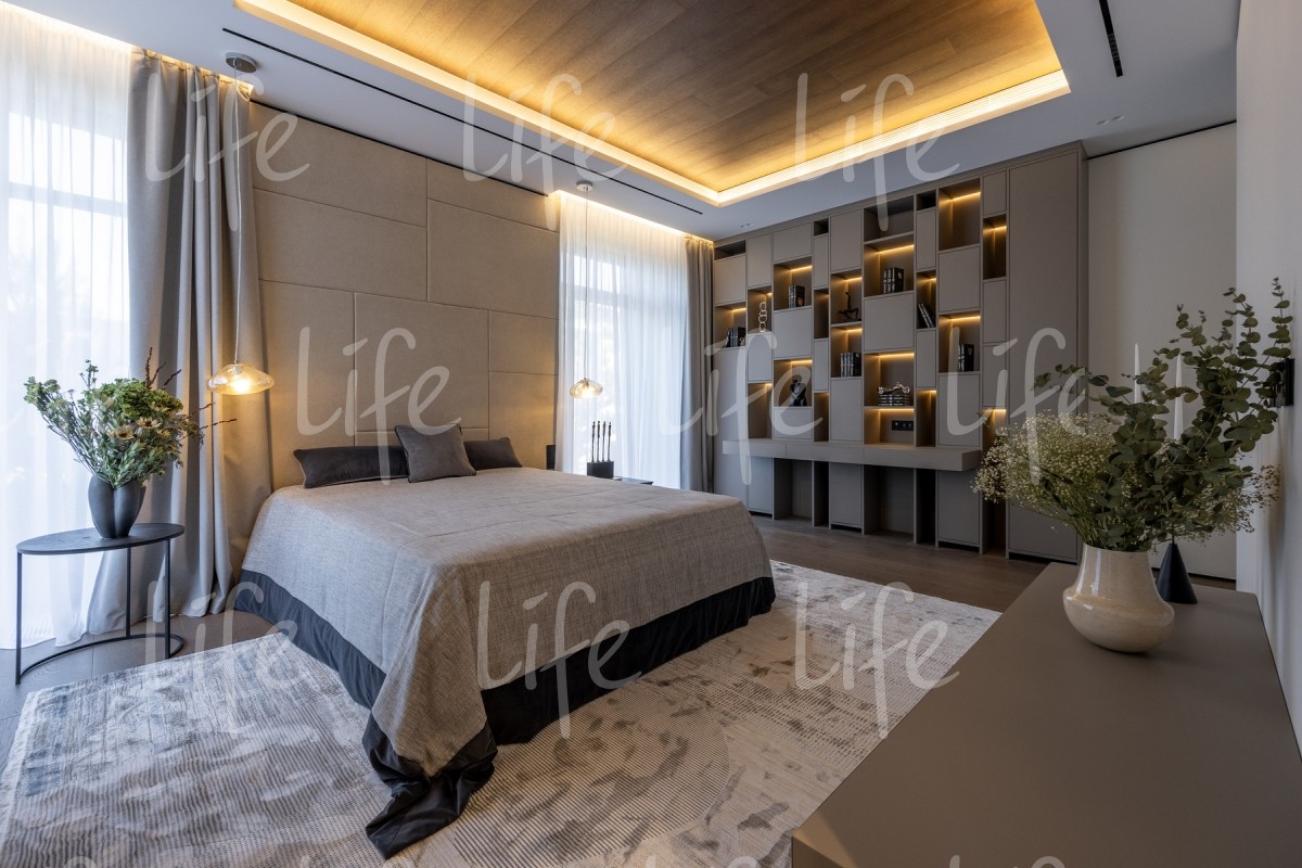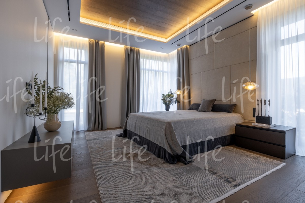 Удобная планировка, пять спален, гостиная со вторым светом, СПА-зона с бассейном обеспечивают комфортное проживание. Есть блок для персонала с двумя спальнями.