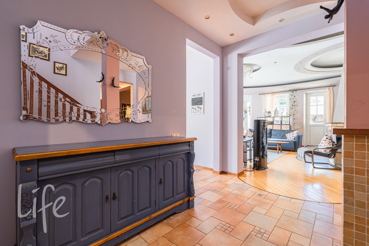 1 этаж: каминный зал, кухня, столовая, кухня, большая крытая уличная веранда, спальня, ванная комната, бассейн, сауна, гараж, квартира для персонала.